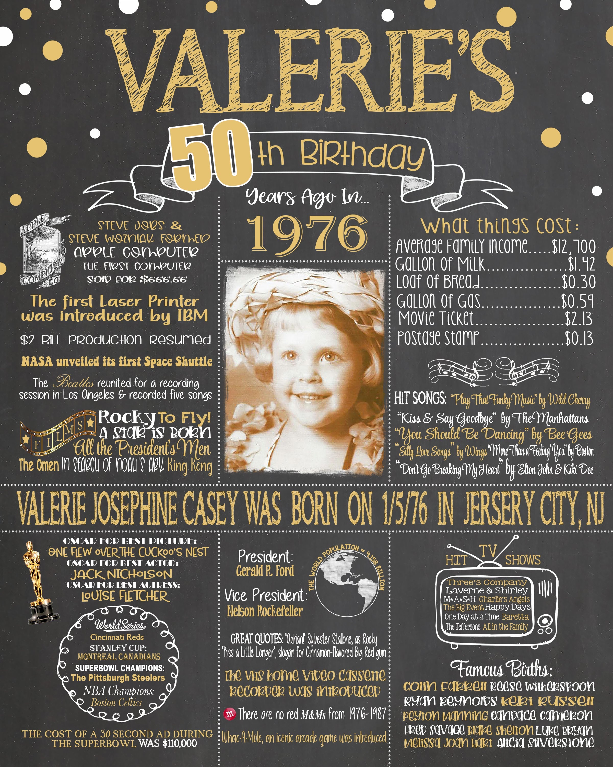 50th Birthday Chalkboard - PHOTO Chalkboard - Fun Facts - 1976
