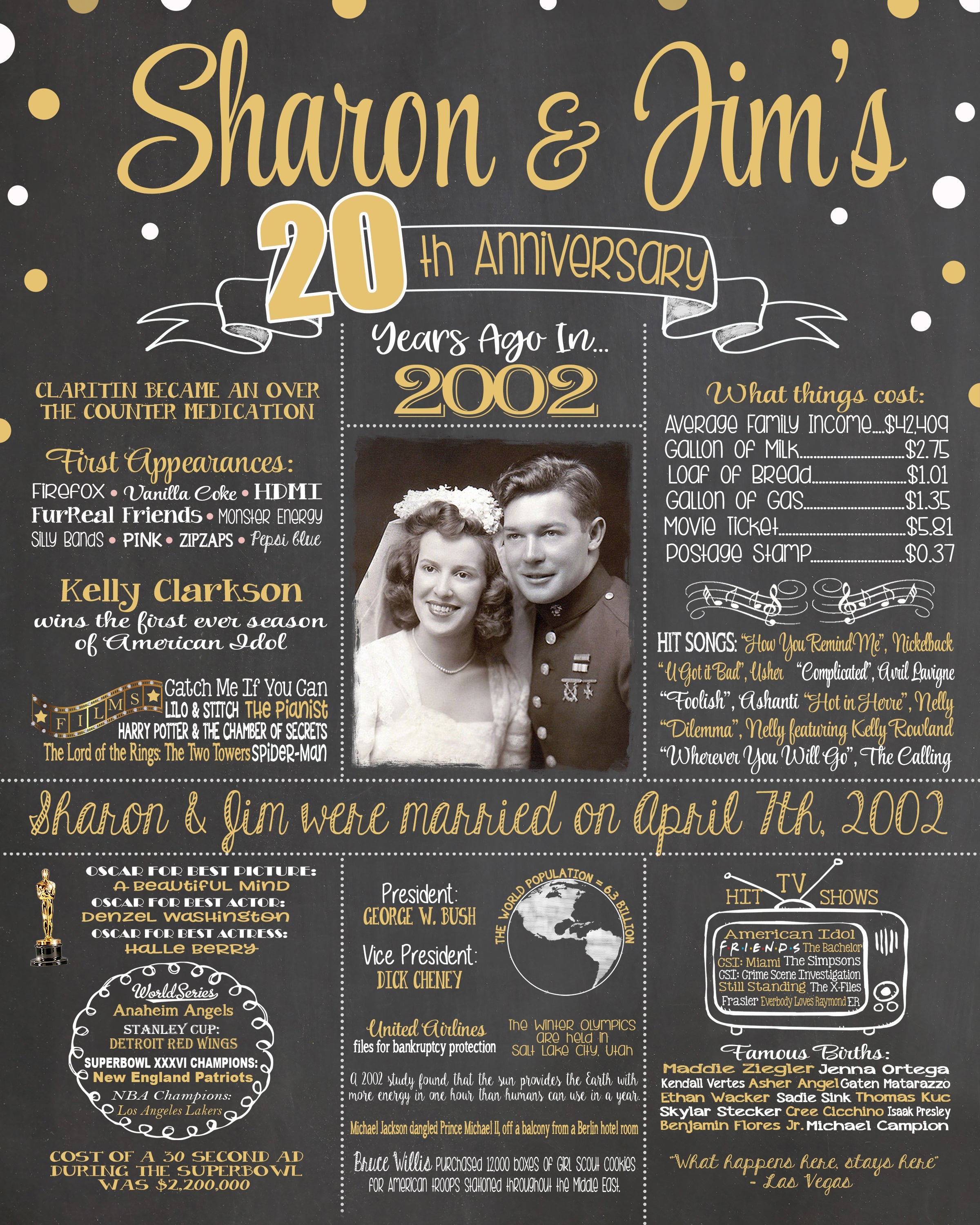 Anniversary Sign, 20th Wedding Anniversary Photo Chalkboard, Back in 2002 Board ANN2001999YR0520