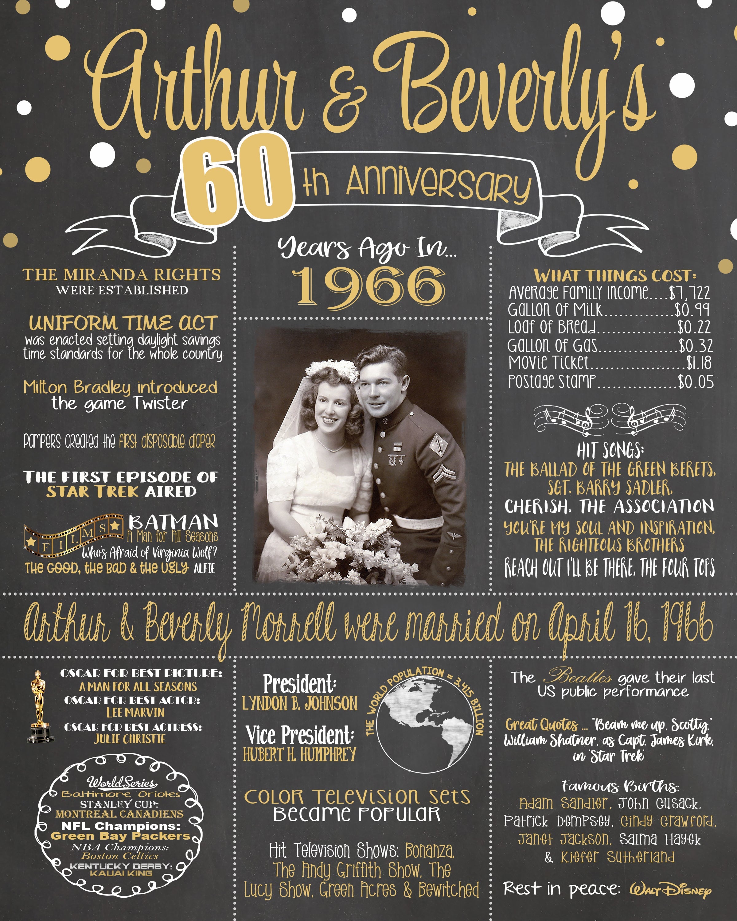 60th Wedding Anniversary Chalkboard - PHOTO Chalkboard,1966 Anniversary Board ANNIV60CHALK0520
