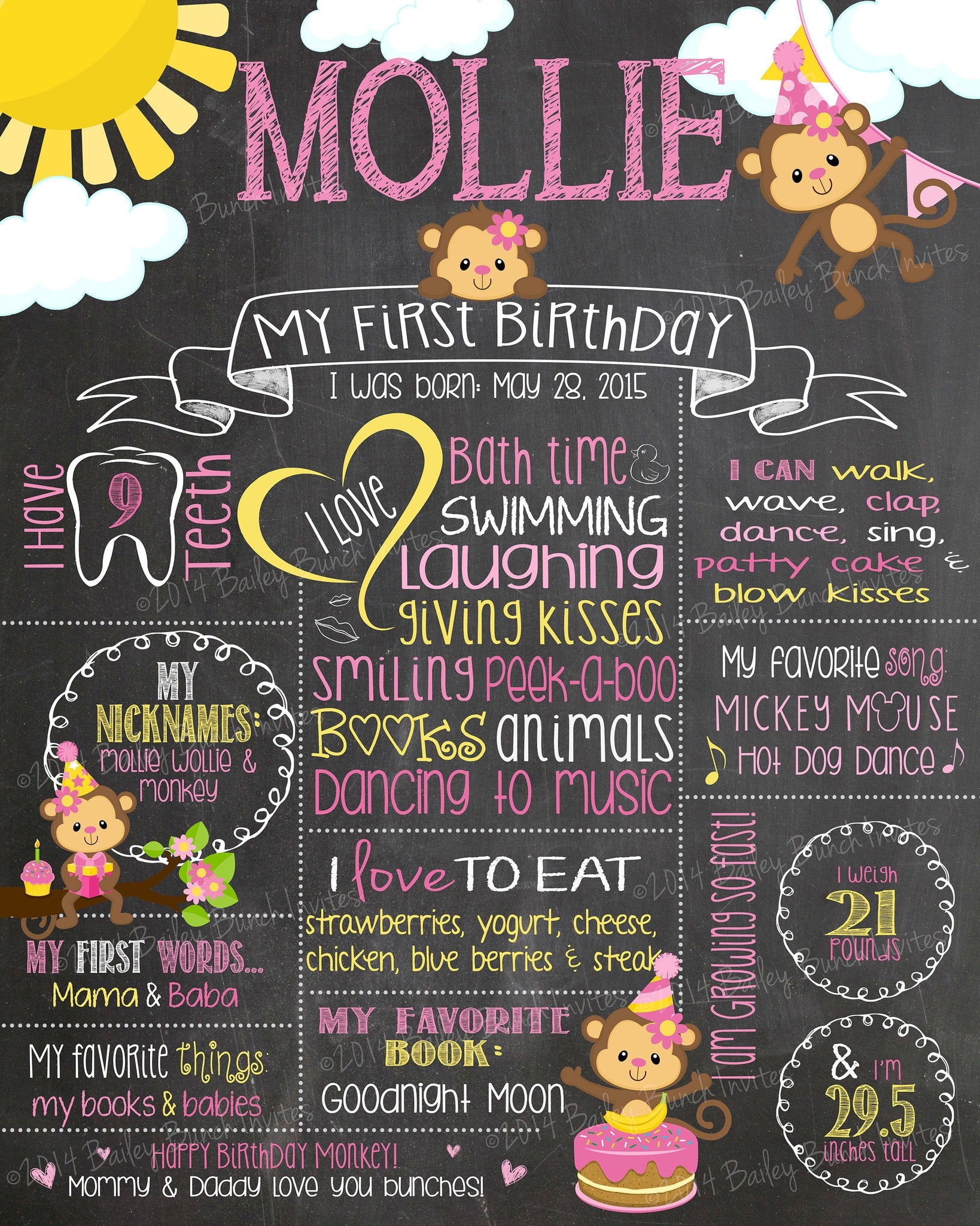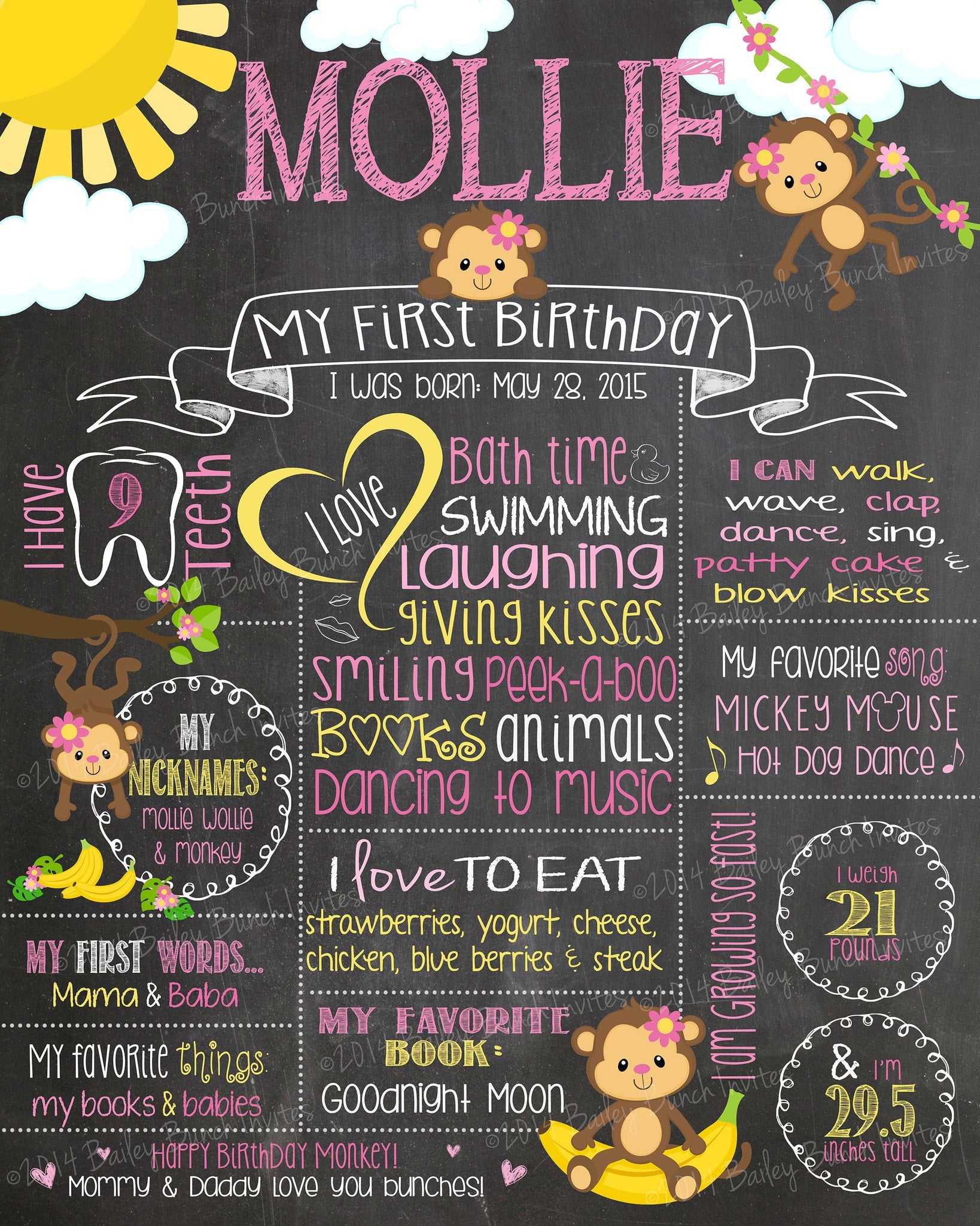 Little Monkey Birthday Birthday Chalkboard Poster, Pink, Boy and Girl MONKEYPCHALK0520