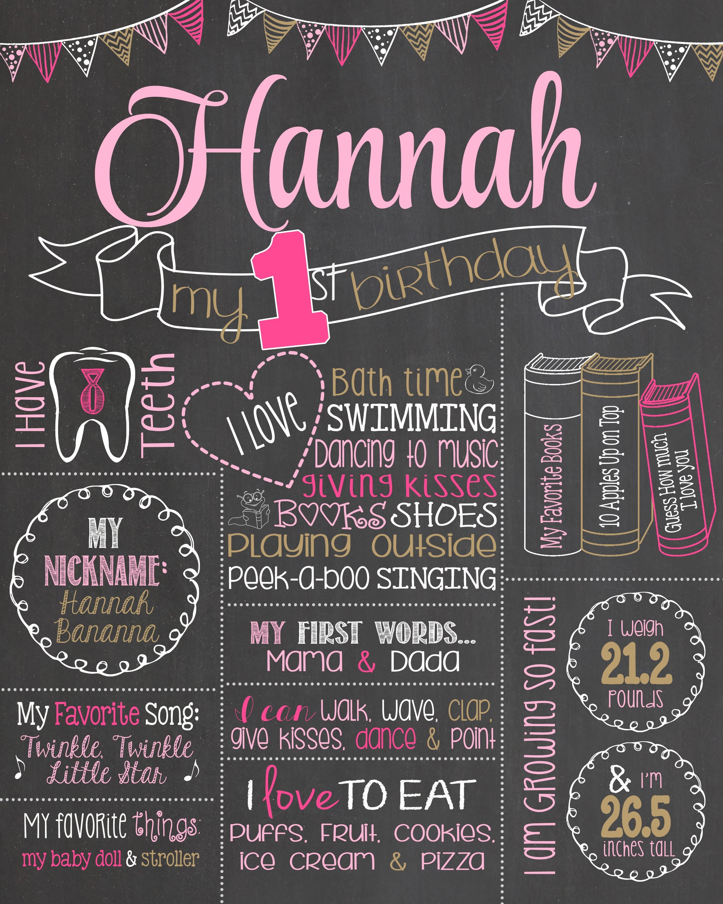 Your chalkboard can be printed at most local photo print shops: walgreens, walmart, staples, fedex kinkos, office depot, etc The file may be printed on card stock or regular paper and then mounted onto foam board or placed in a frame. Most office supply stores will print the poster and mount it on foam board for you! The ways of presenting your child's first birthday poster are endless: you could frame it, mount it on a foam board, print it on a canvas, or even share it digitally on facebook or thru email.