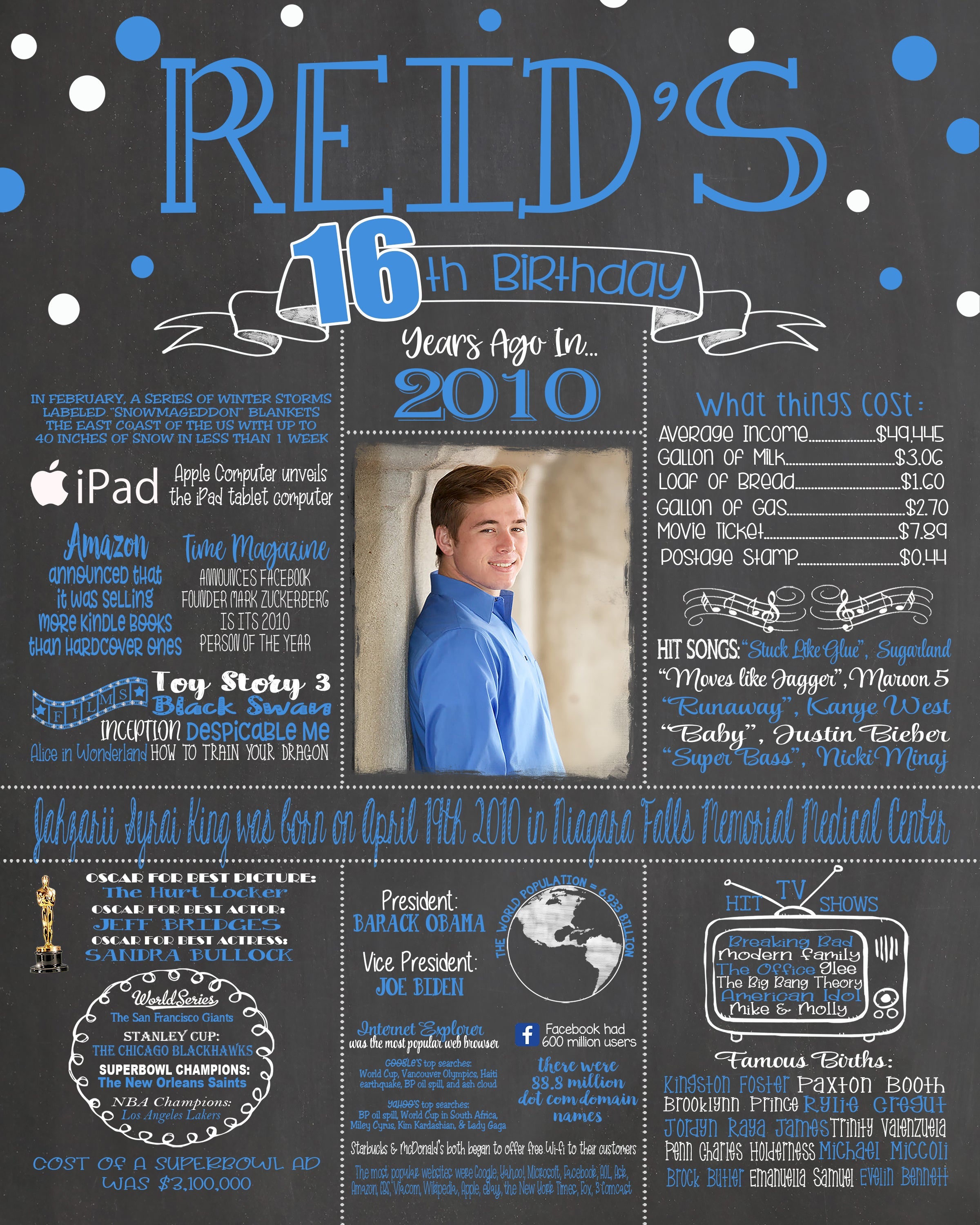 16th Birthday Chalkboard Poster Sign Board - 2010 Sweet Sixteen Polka Dots 16YR2010B0520