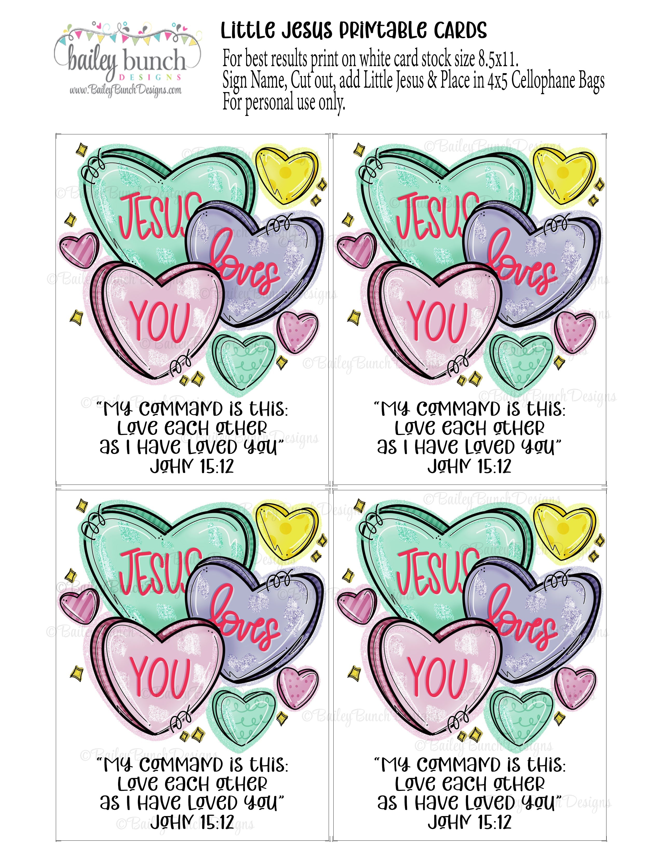 Jesus Loves you Conversation Hearts Little JESUS Valentine Gift Cards - Love Like Jesus! INSTANT DOWNLOAD