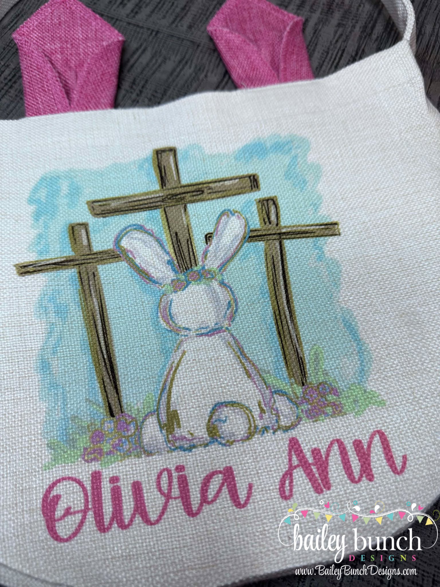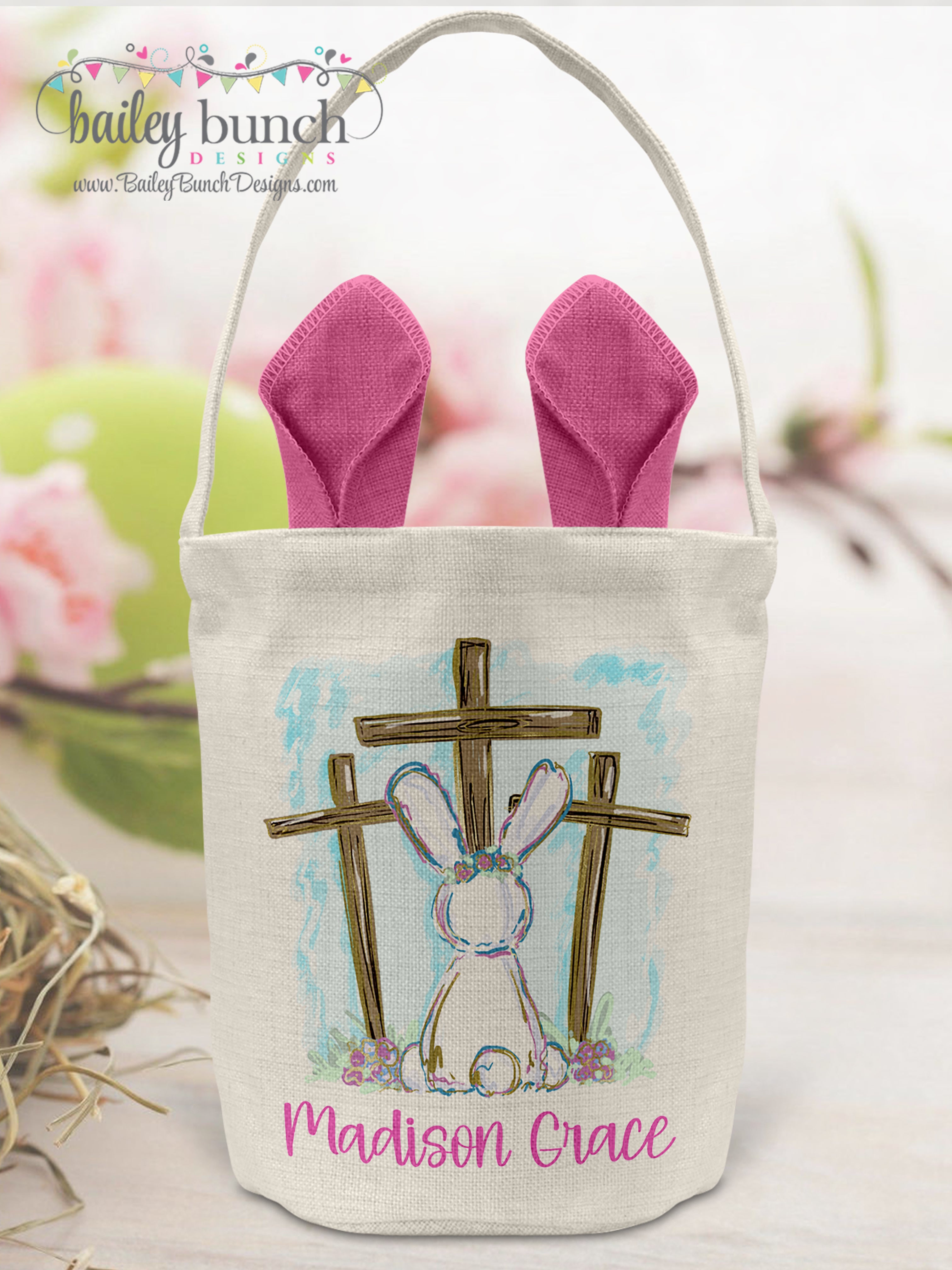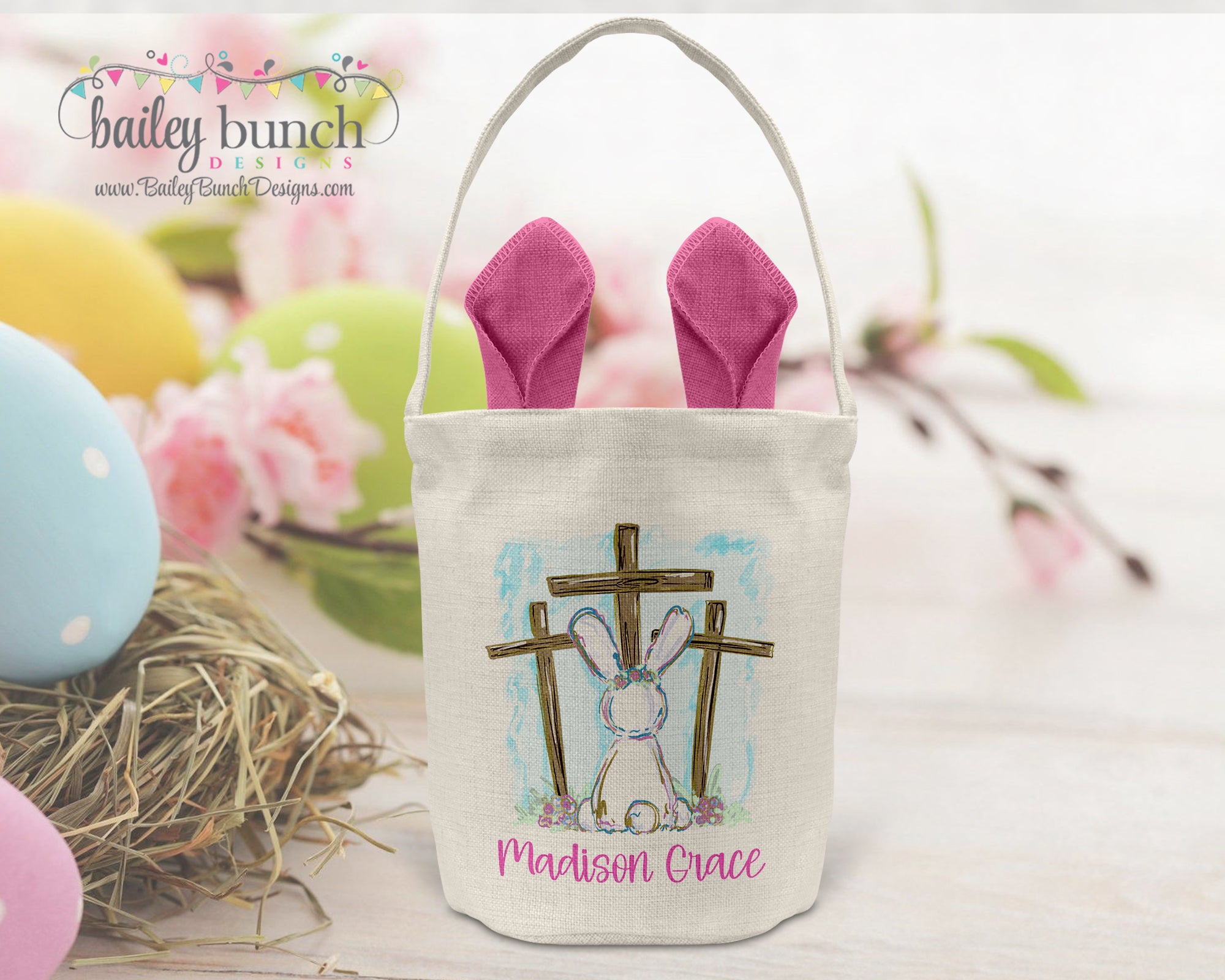 Easter Bunny 3 Crosses Basket Bunny Ears Basket Personalized BASKETCROSS0520