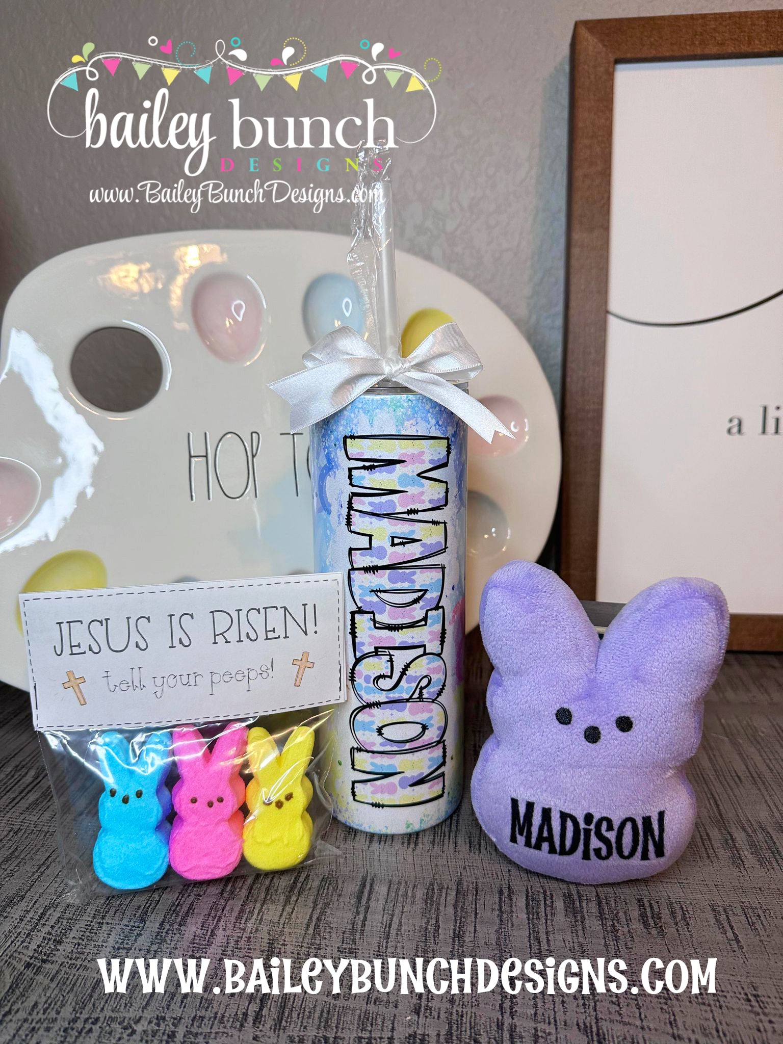Soft plush peeps measure approximately 5-6inches & are personalized with one name.