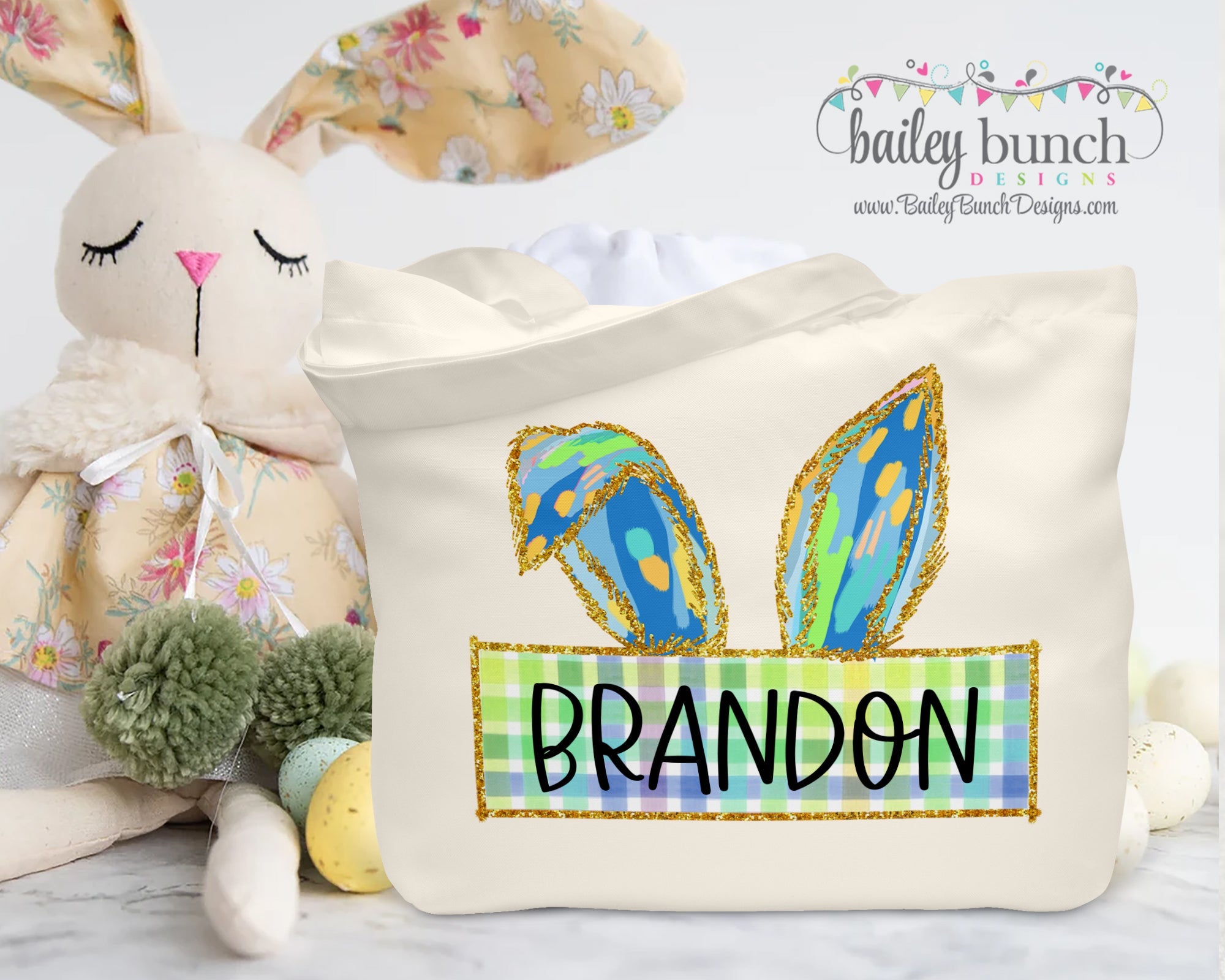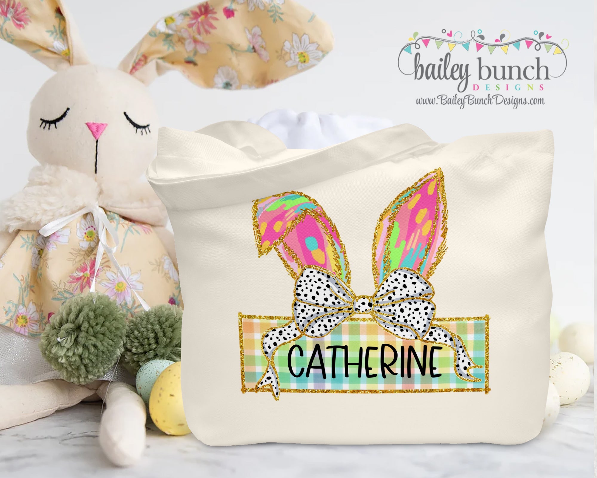 GLITTER BUNNY EAR Easter Tote