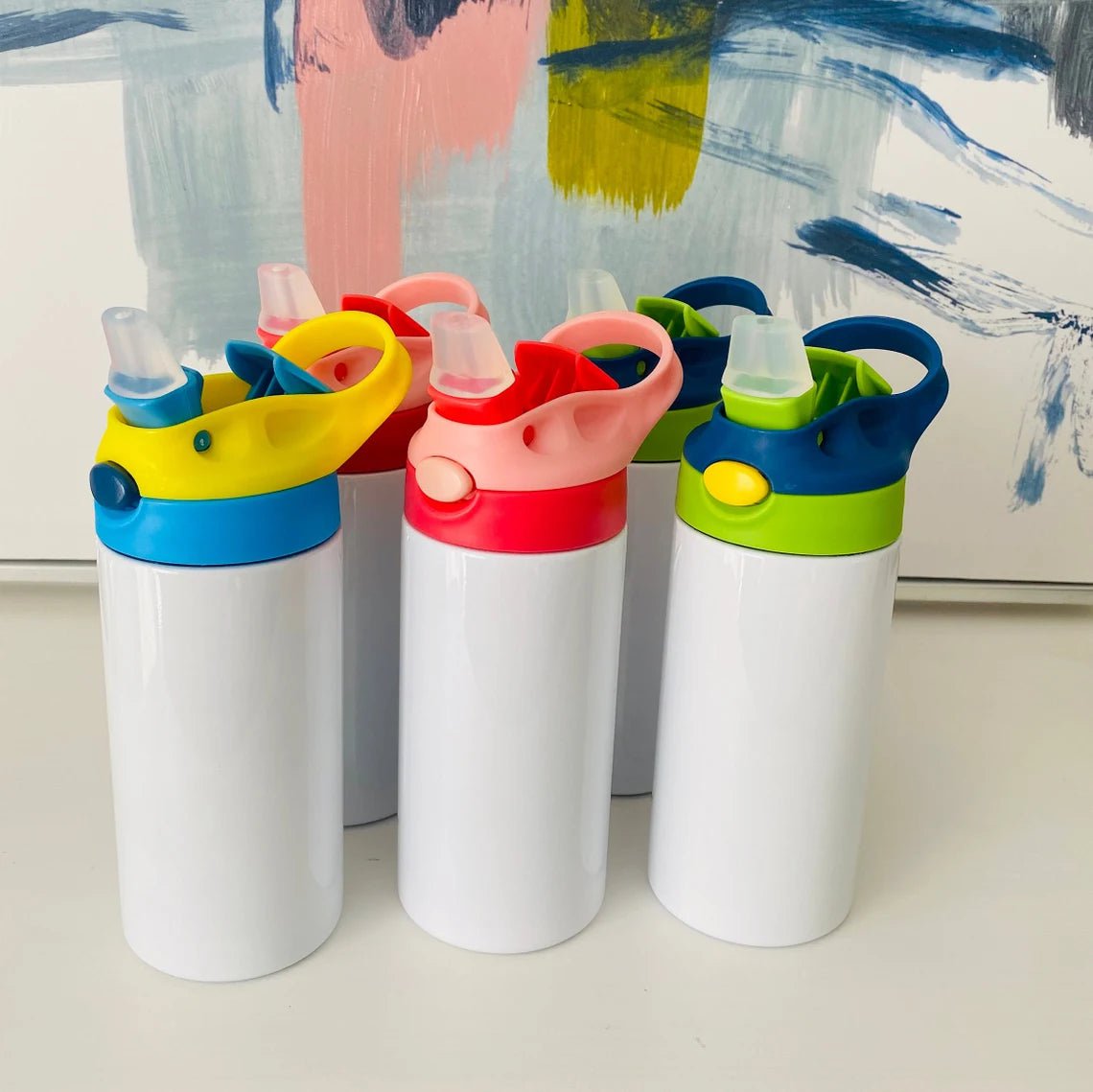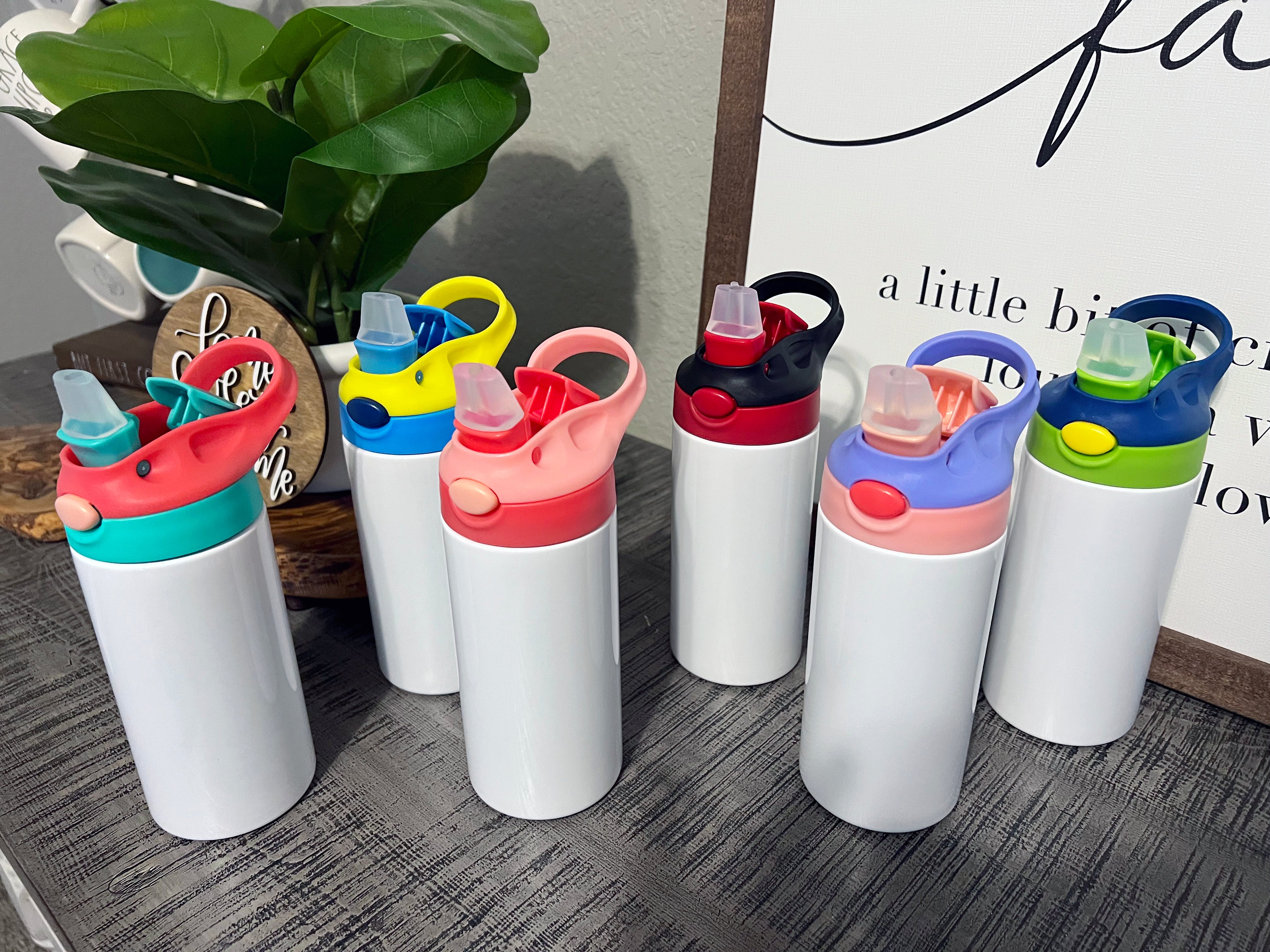 Our 12oz Kids Flip Top Tumbler, features stainless steel insulated tumbler with a double-wall vacuum insulation with a Leak-Proof flip-top lid and a Reusable Plastic Straw.