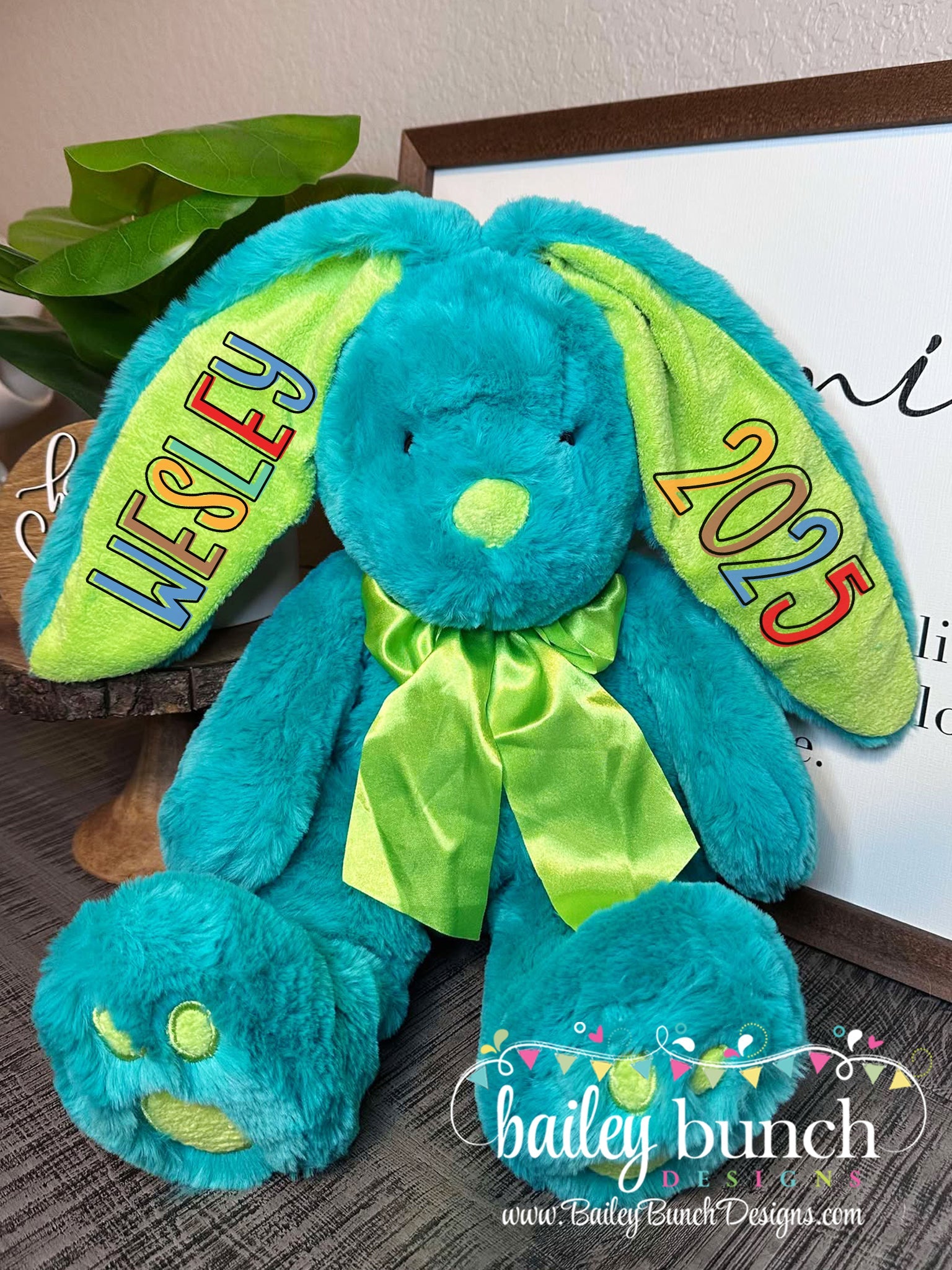 Teal & Green Large Easter Bunny Stuffed Plush Bunnies Personalized 21 inch BUNNYTEALLINDSAY0520