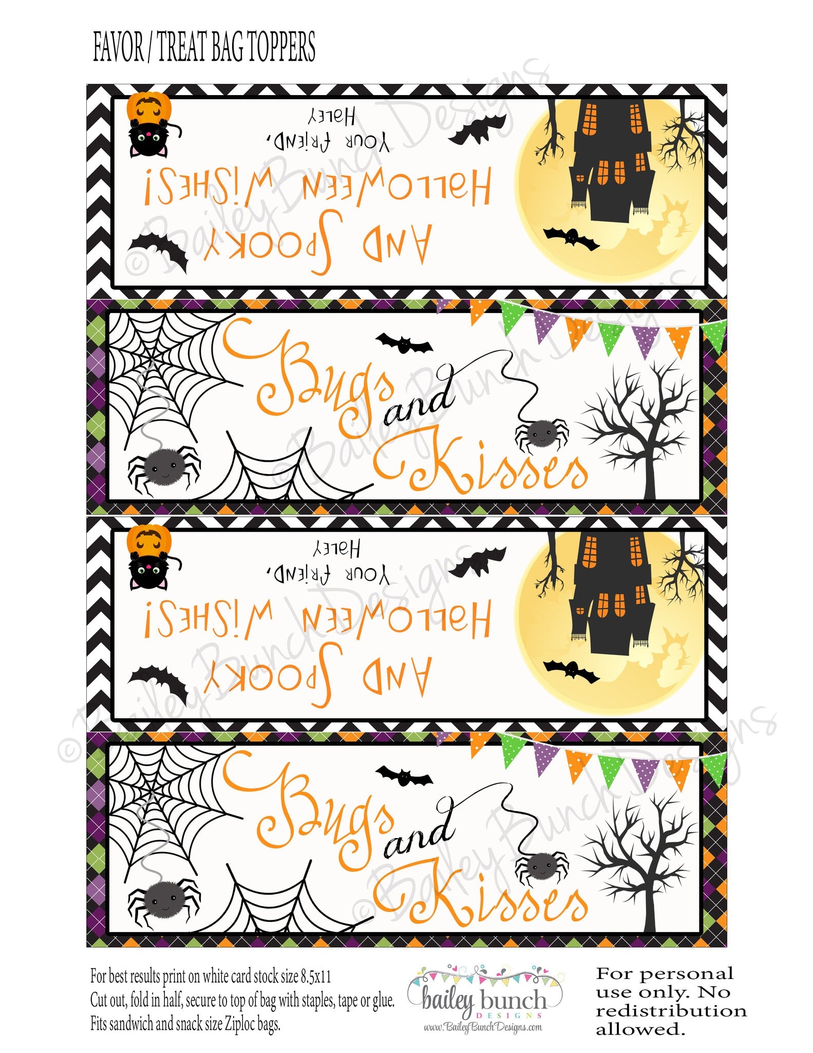 Halloween Bugs and Kisses, Bugs & Kisses, Spooky wishes, Halloween Favors Trick or Treat Favors Treat Bag Toppers PERSONALIZED - 2 DESIGNS!!
