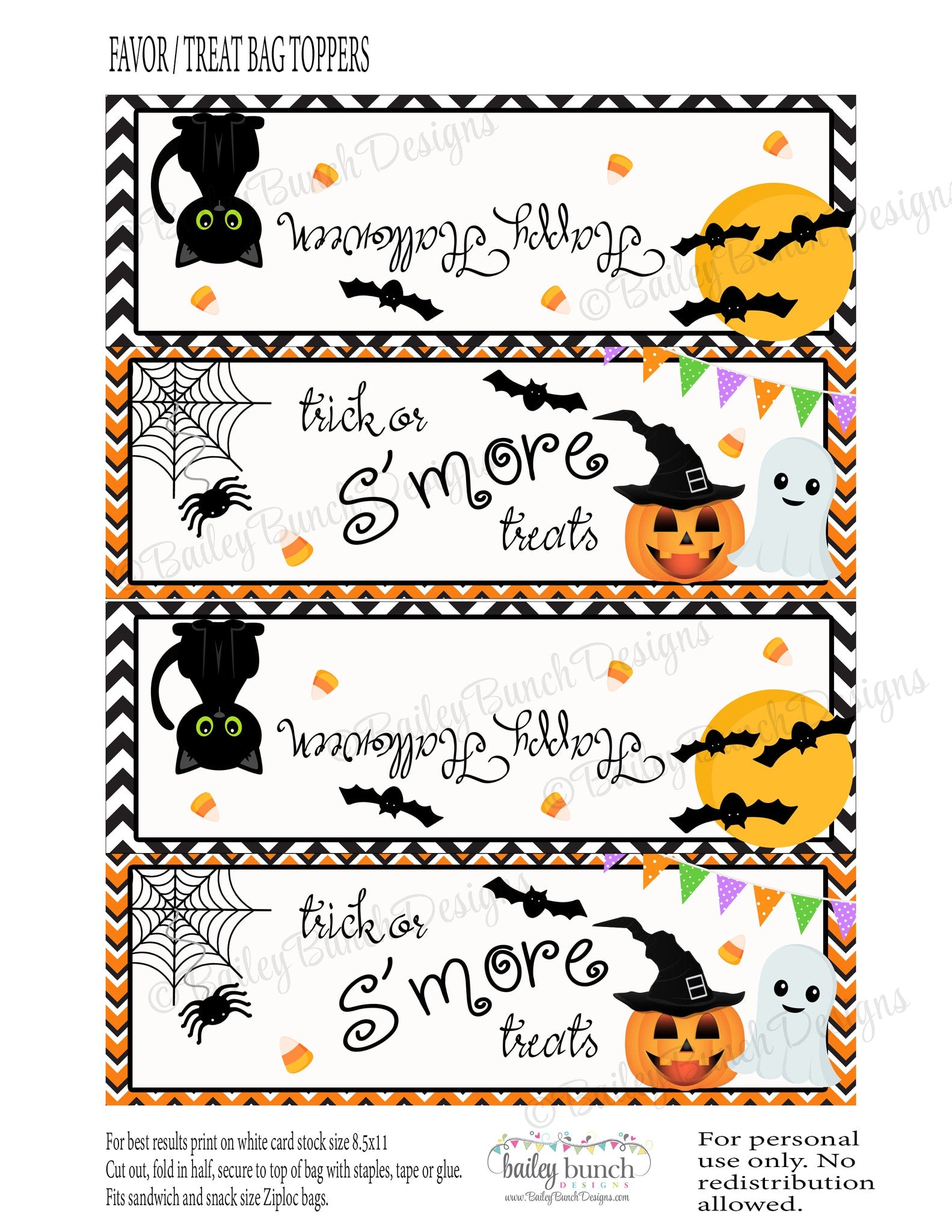 Halloween S'more Favor Treat Bags - 2 DESIGNS!! INSTANT DOWNLOAD IDBOOSMORES0520