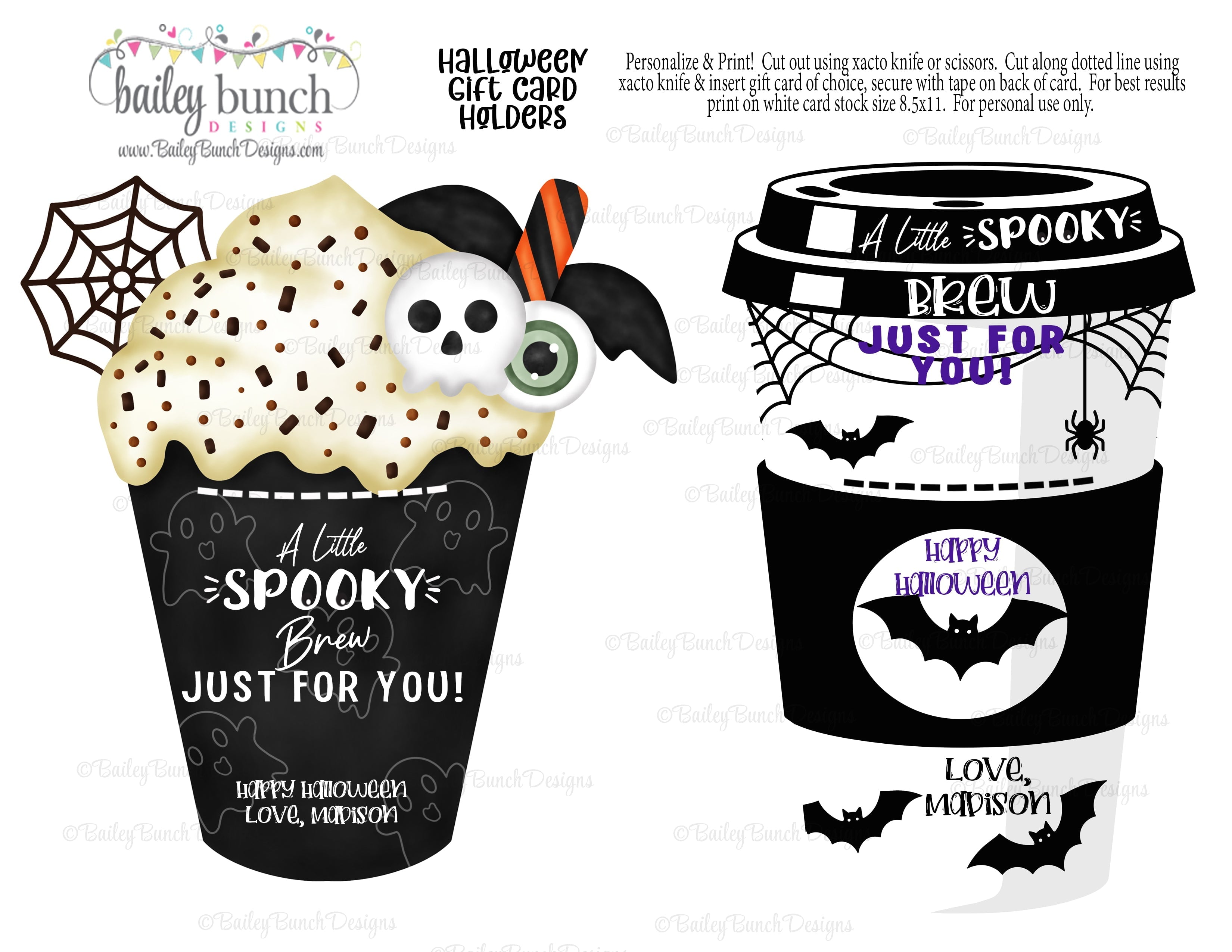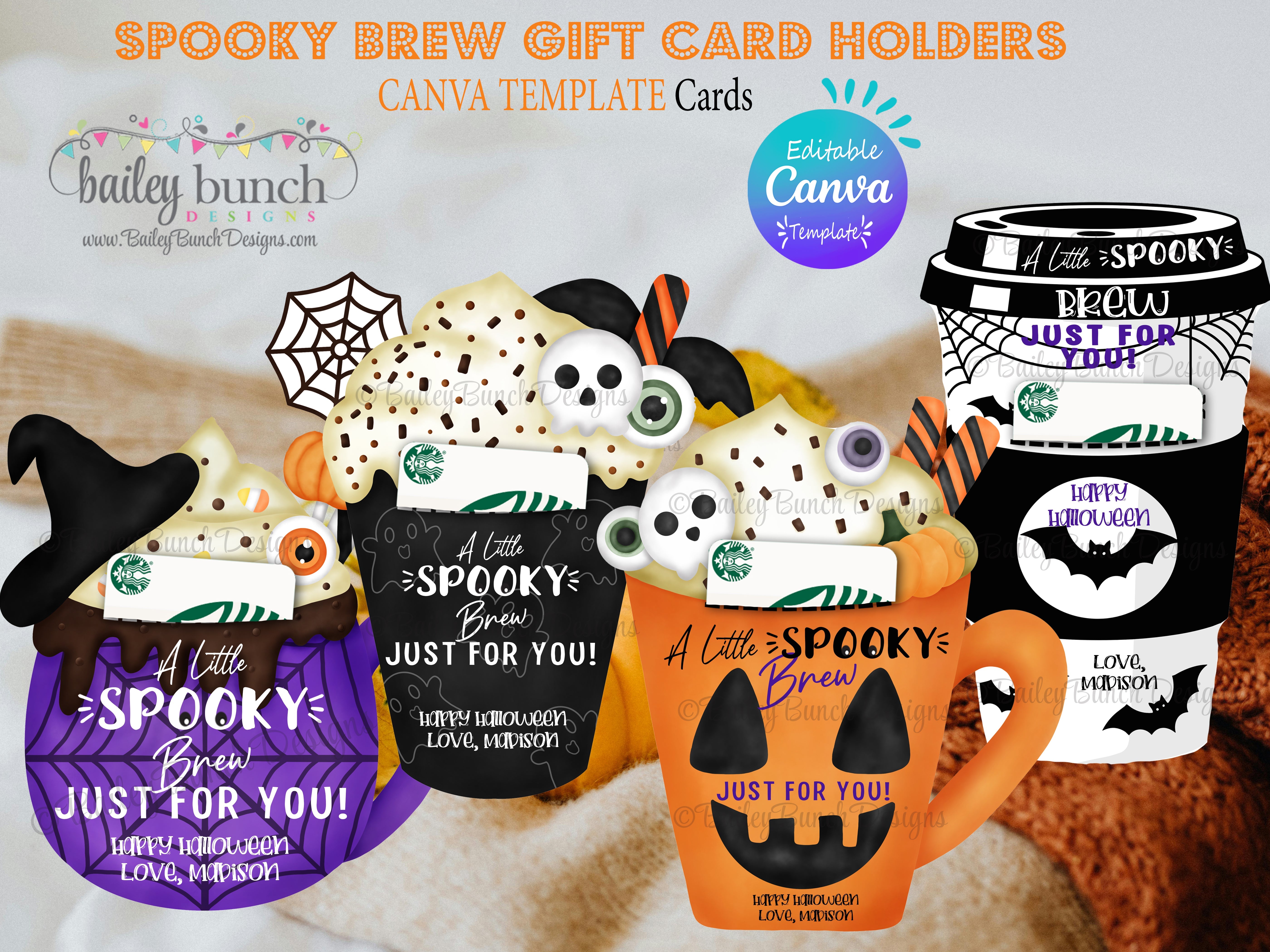 Halloween Spooky Brew Gift Card Holders, Halloween Gifts, Best Teacher Gifts, Non Candy Halloween treats, Happy Halloween, Spooky Brew - Editable Canva Template