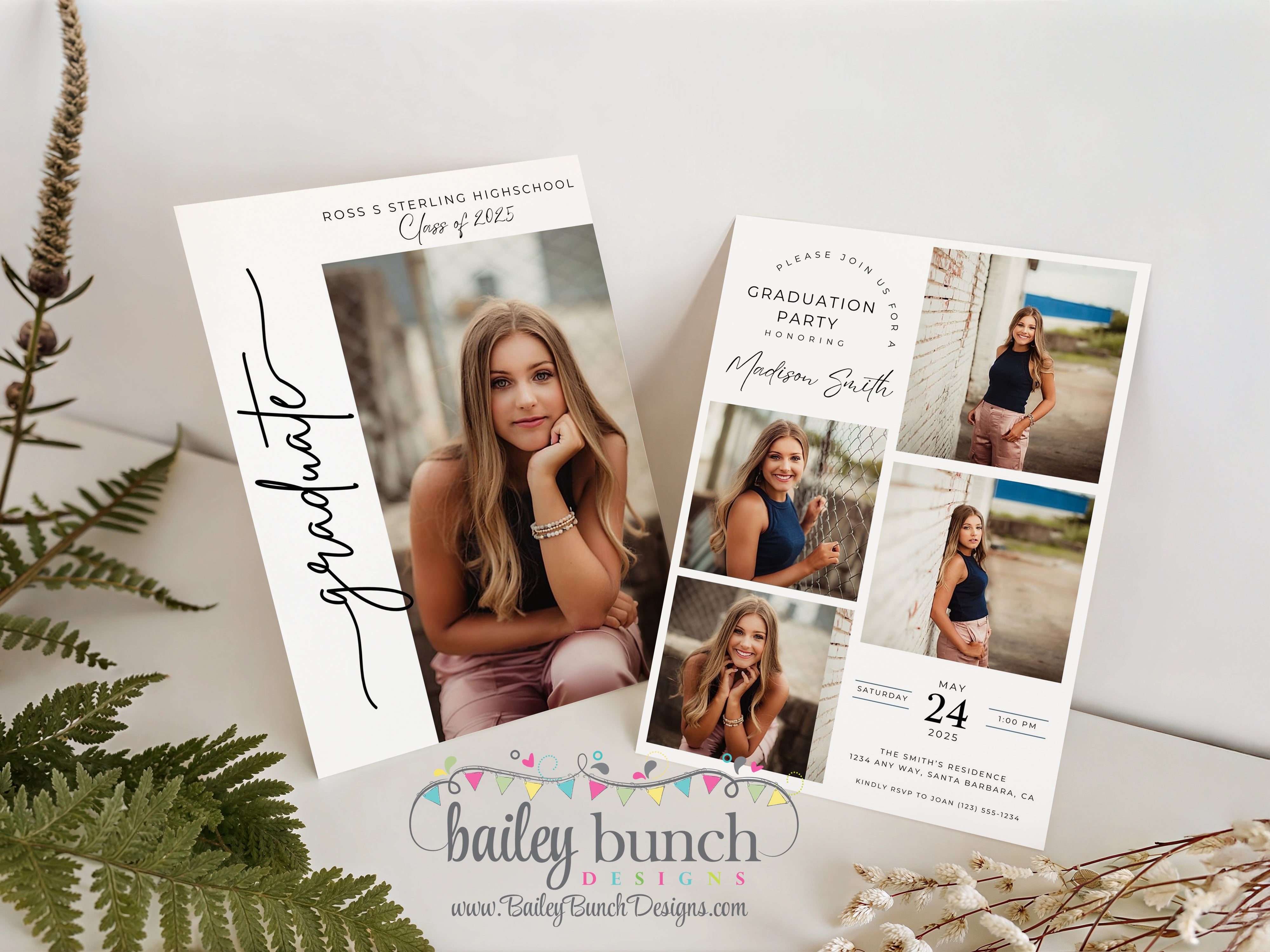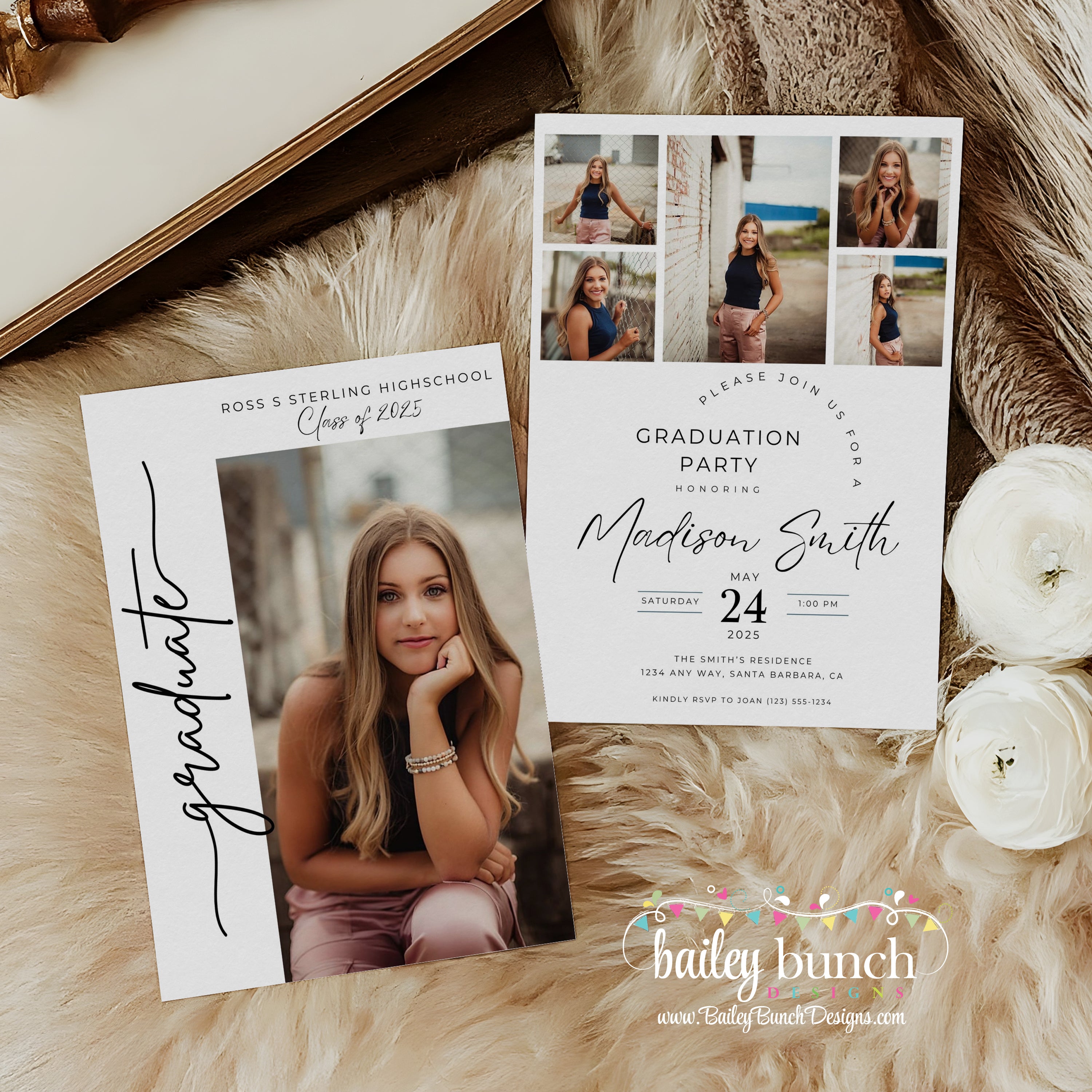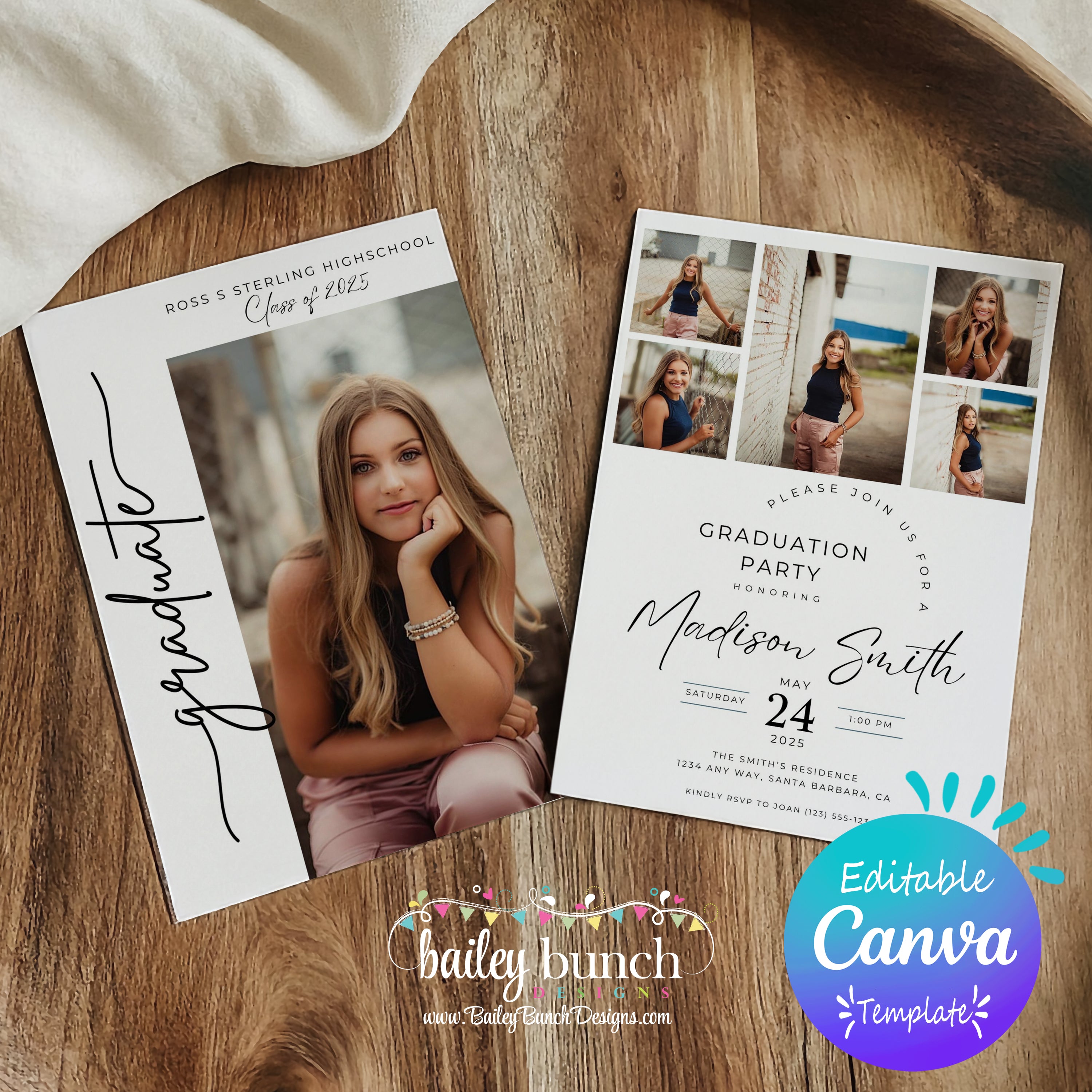 INVITATION: https://www.baileybunchdesigns.com/collections/graduation-cards/products/senior-announcement-card-template-minimalist-graduation-announcement-gradmintemp05