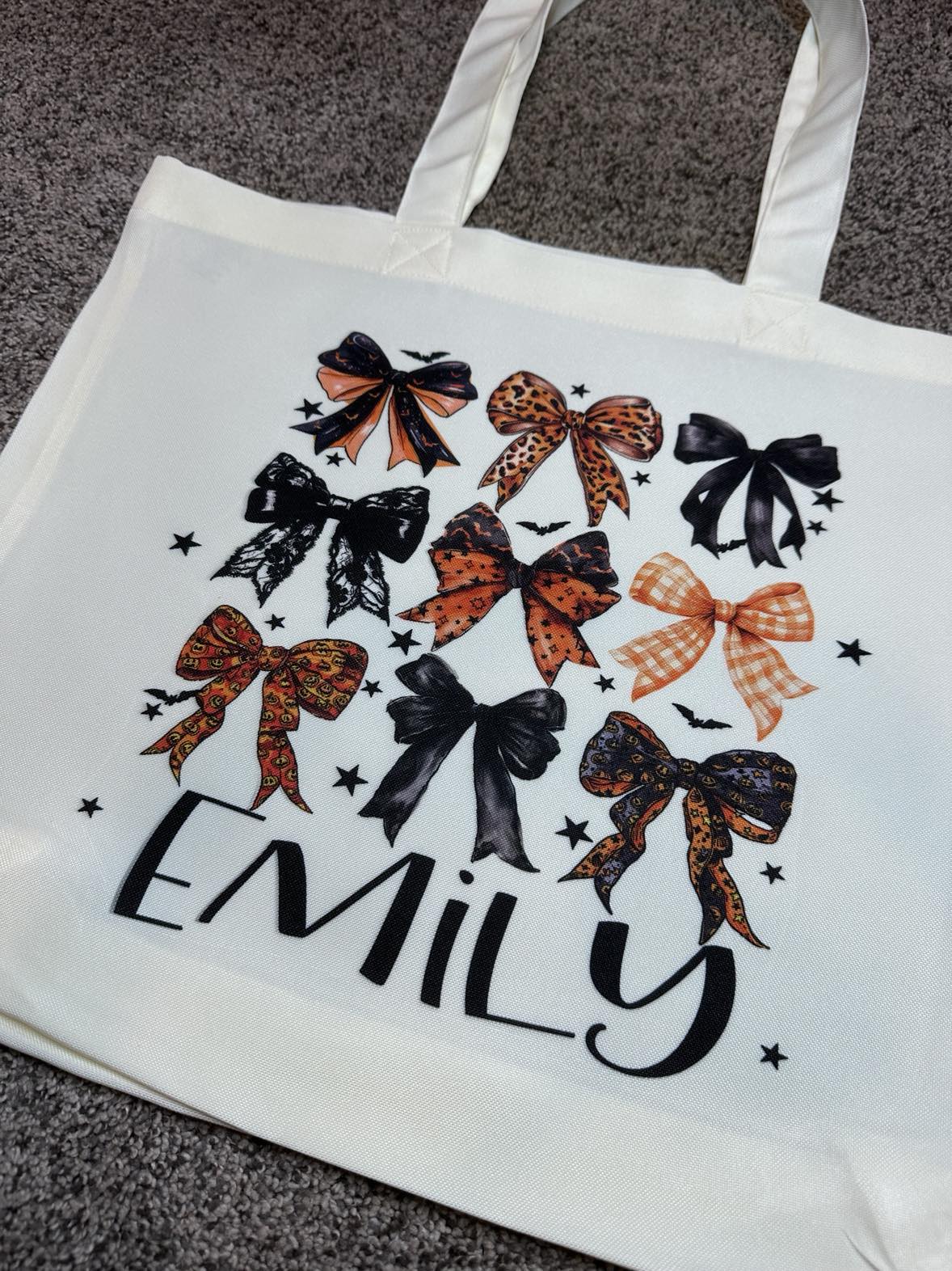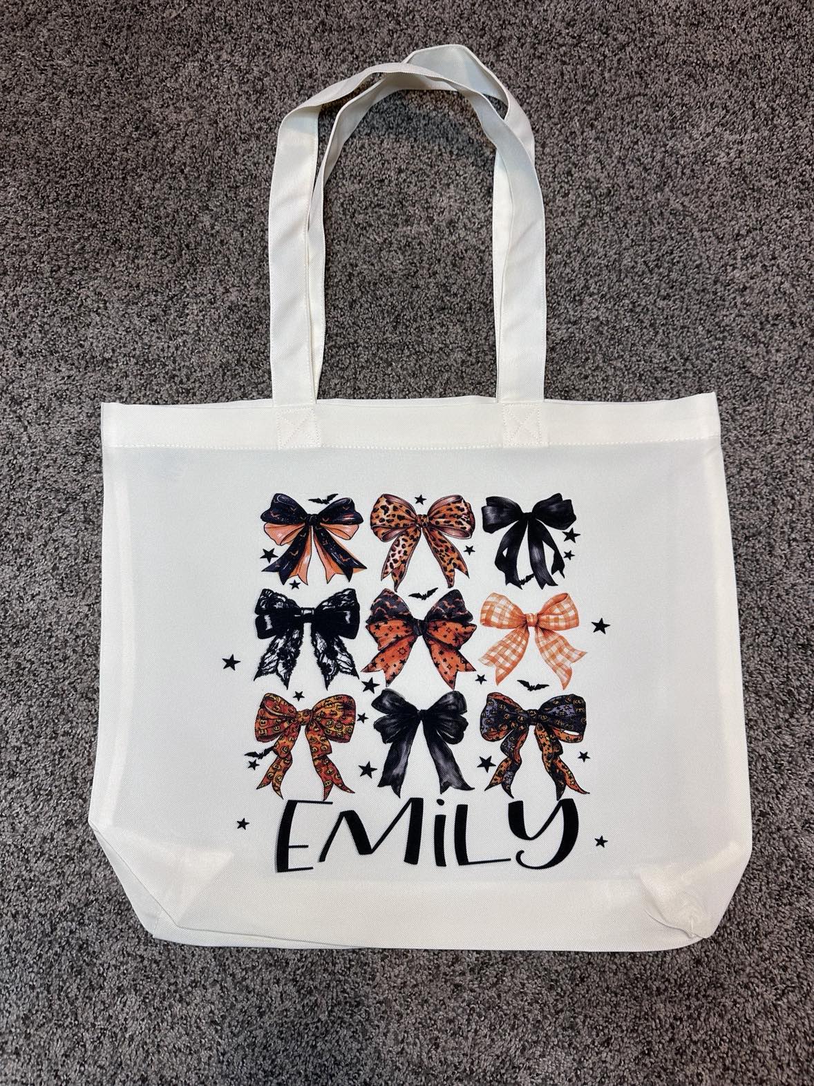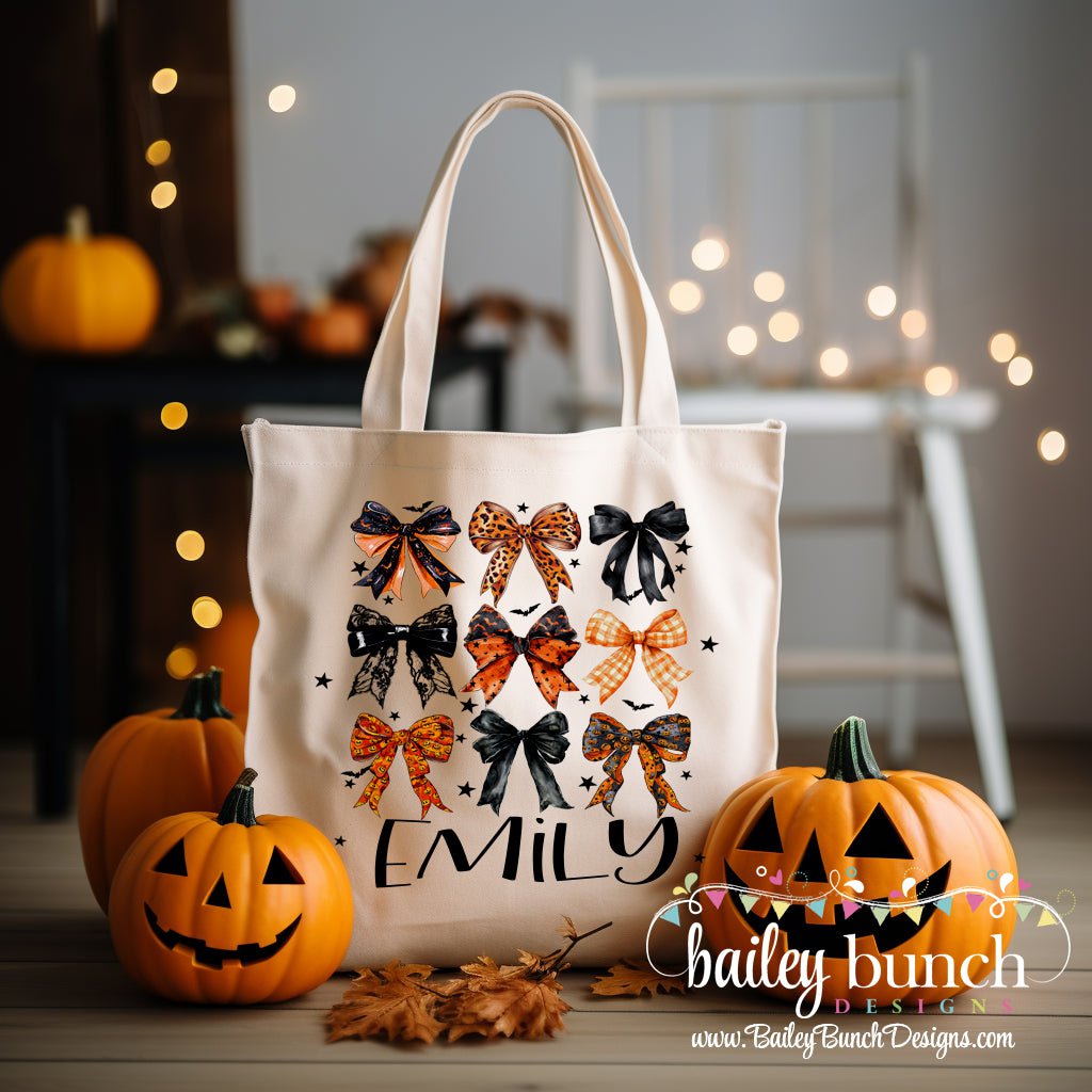 HALLOWEEN BOW Coquette BAG with NAME Trick Or Treat Halloween Bag Tote TOTEBOW340520