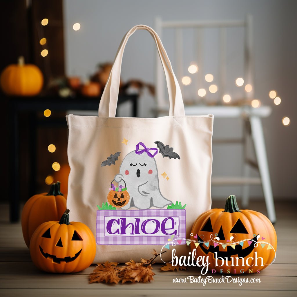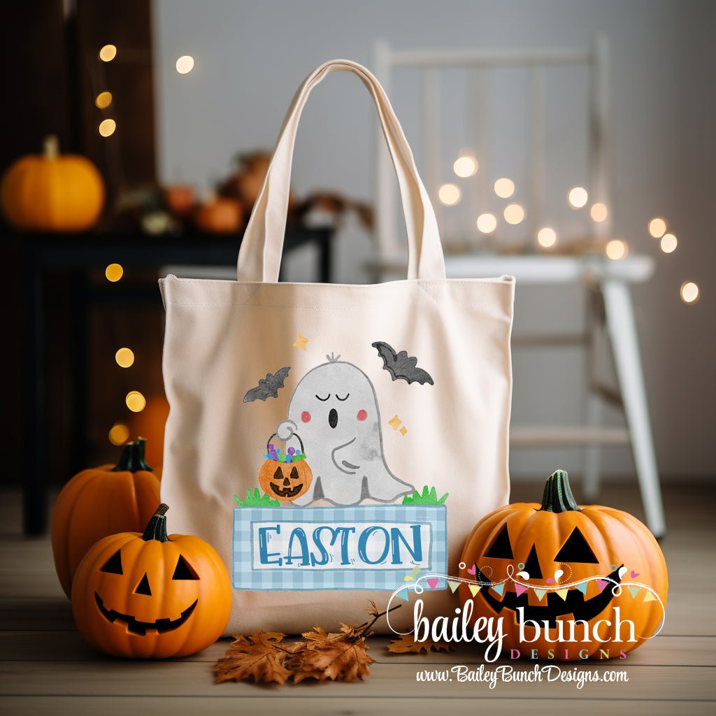 Halloween Ghost Name Large Trick Or Treat Tote Bag Personalized TOTEGHOSTPTRICKS0520