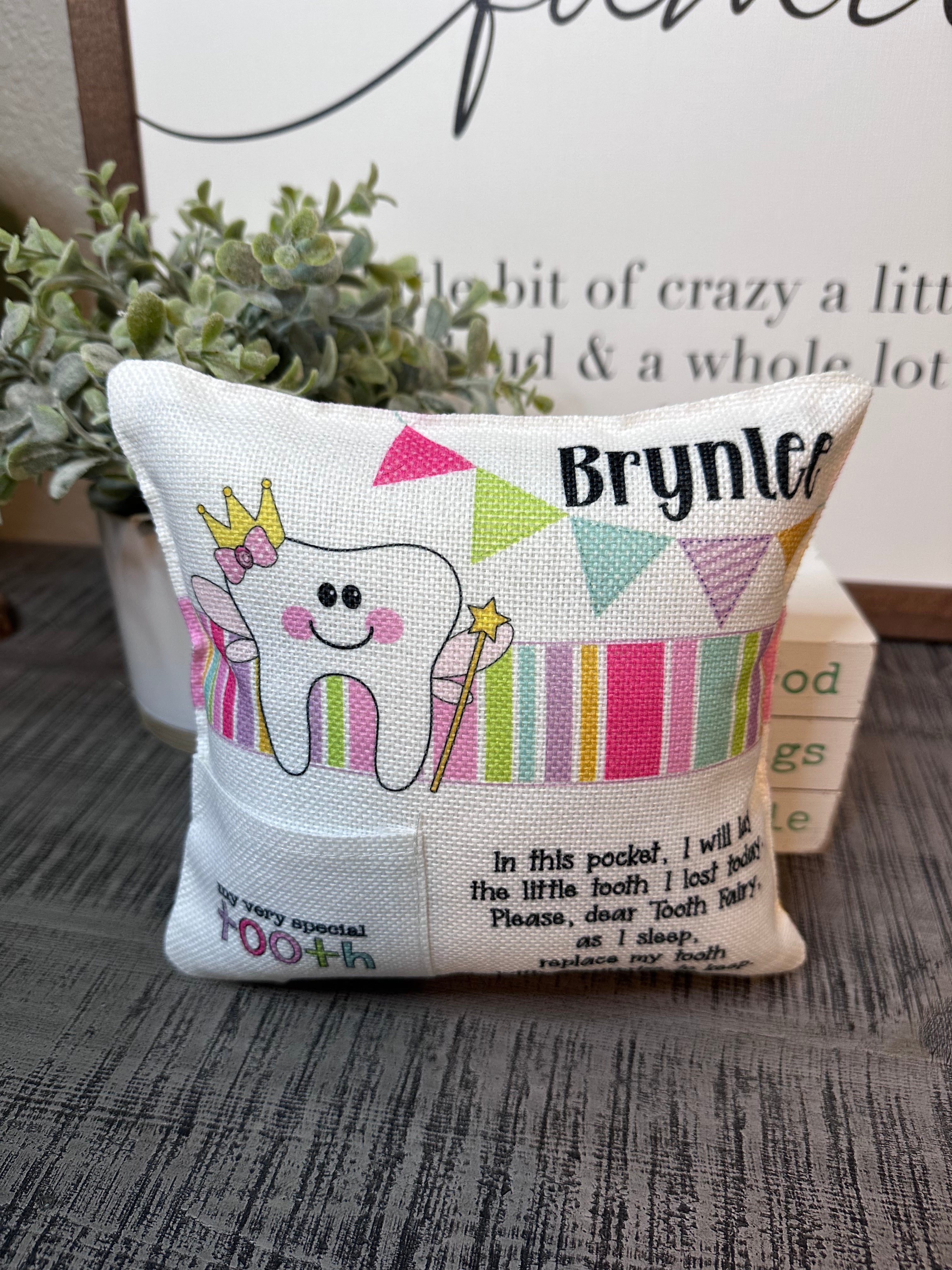 One 8x8 Personalized Tooth Fairy Pillow with pocket