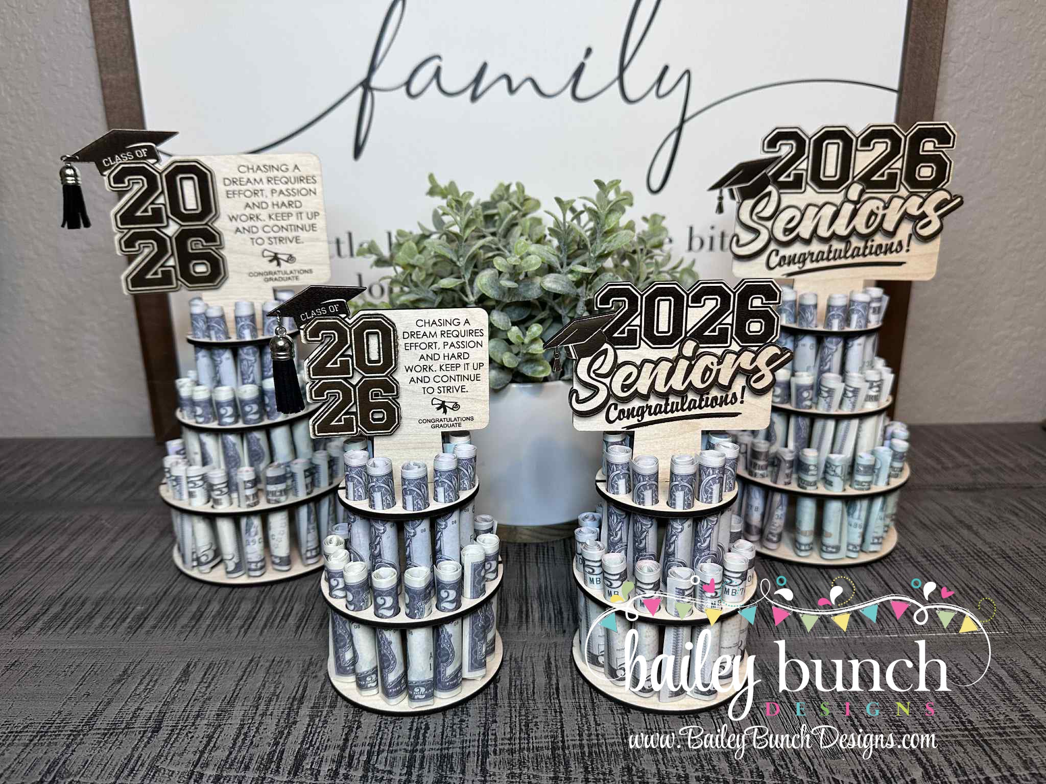 Our graduation money cakes offer a fun and eye-catching way to present cash gifts. Designed as decorative keepsakes, these personalized graduation gifts are ideal for parties, open houses, and graduation celebrations.