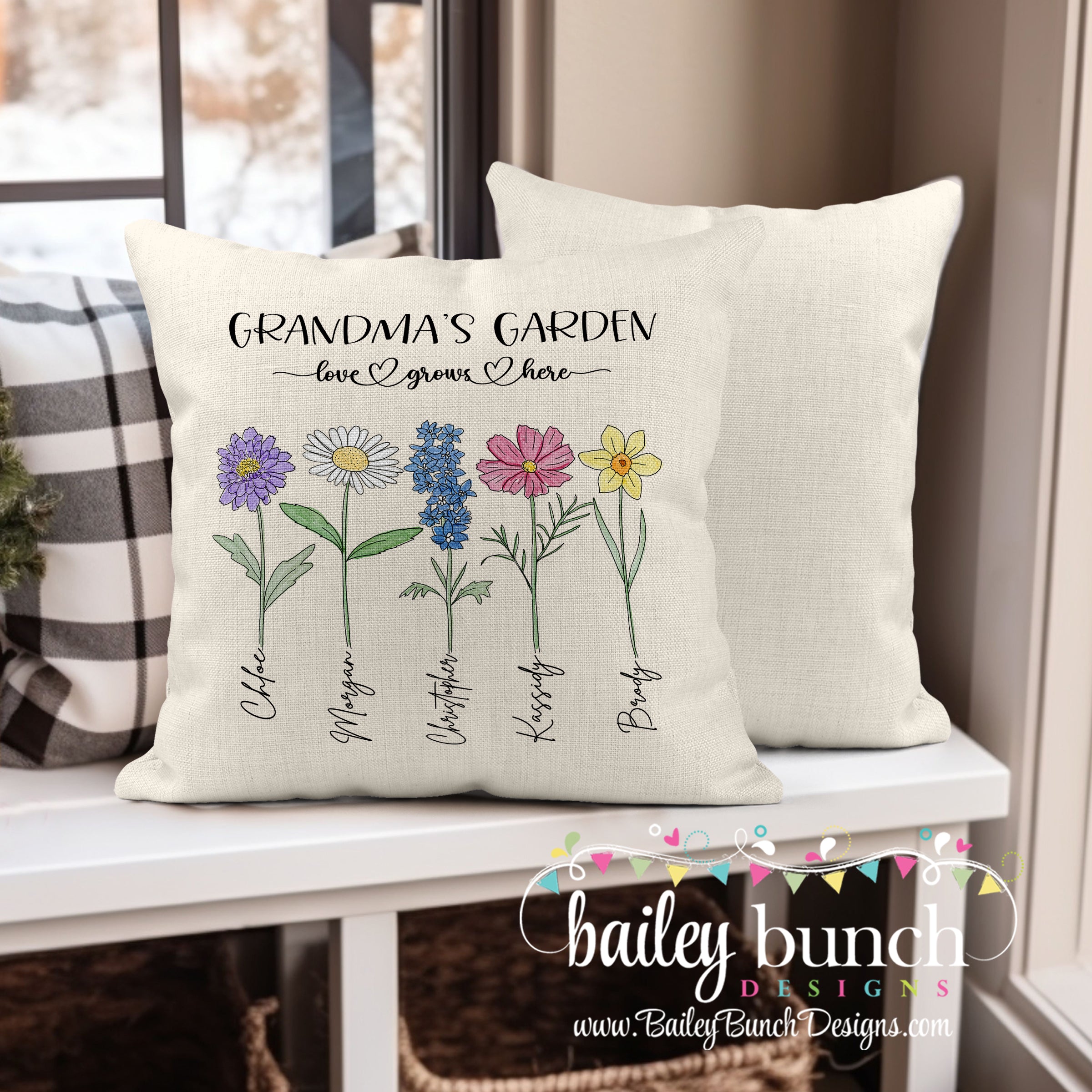 Mother's Day Birth Month Flowers THROW PILLOW PILLOWFLOWERS0520