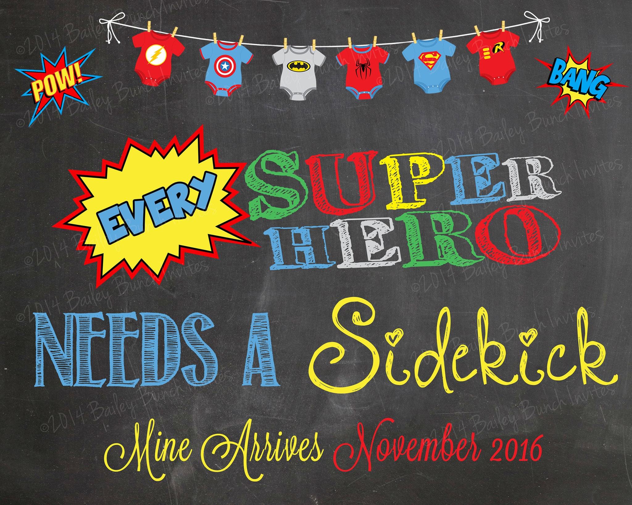 Every Superhero needs a Sidekick Pregnancy Reveal Chalkboard, Announcement, Super Hero - HERO0520
