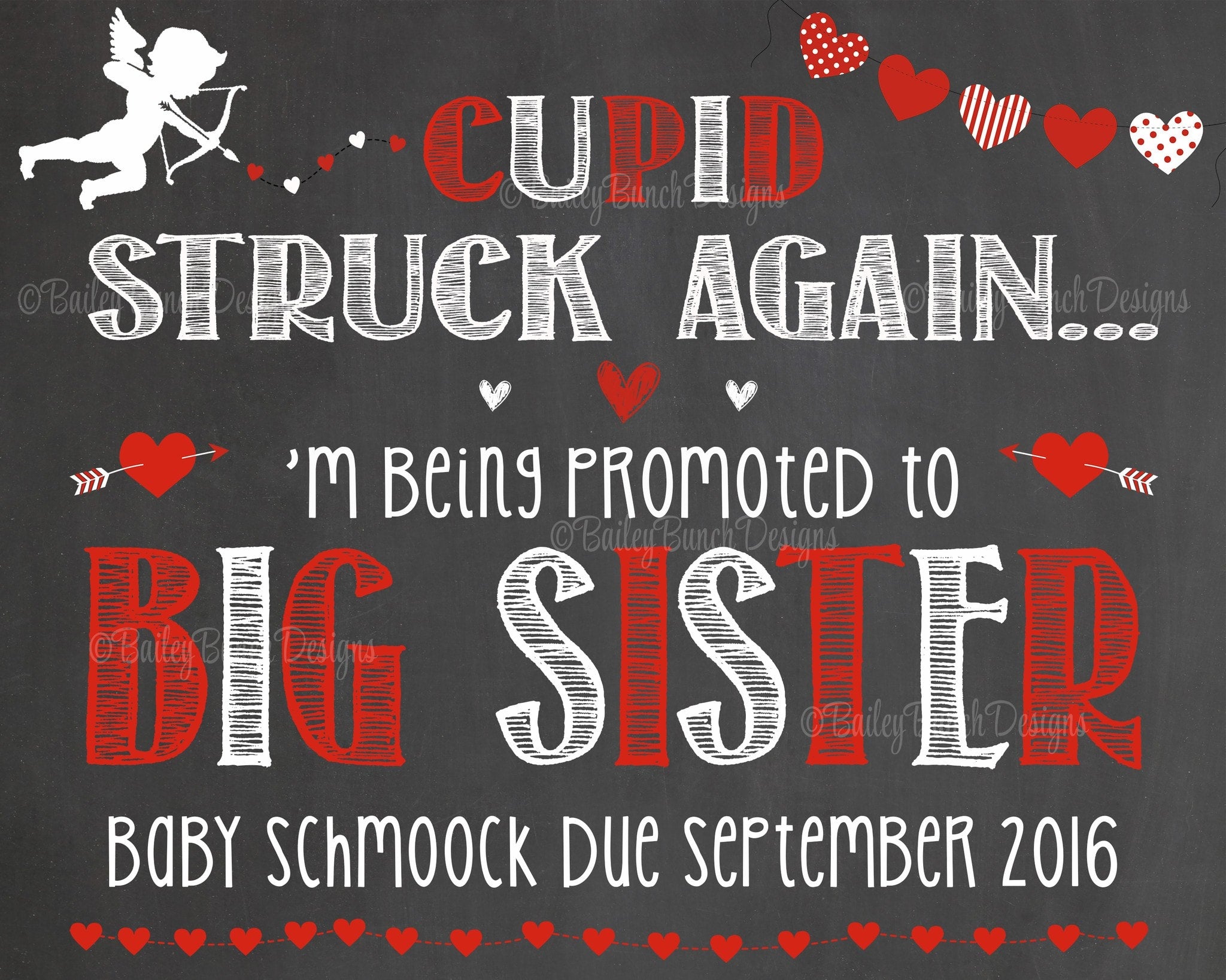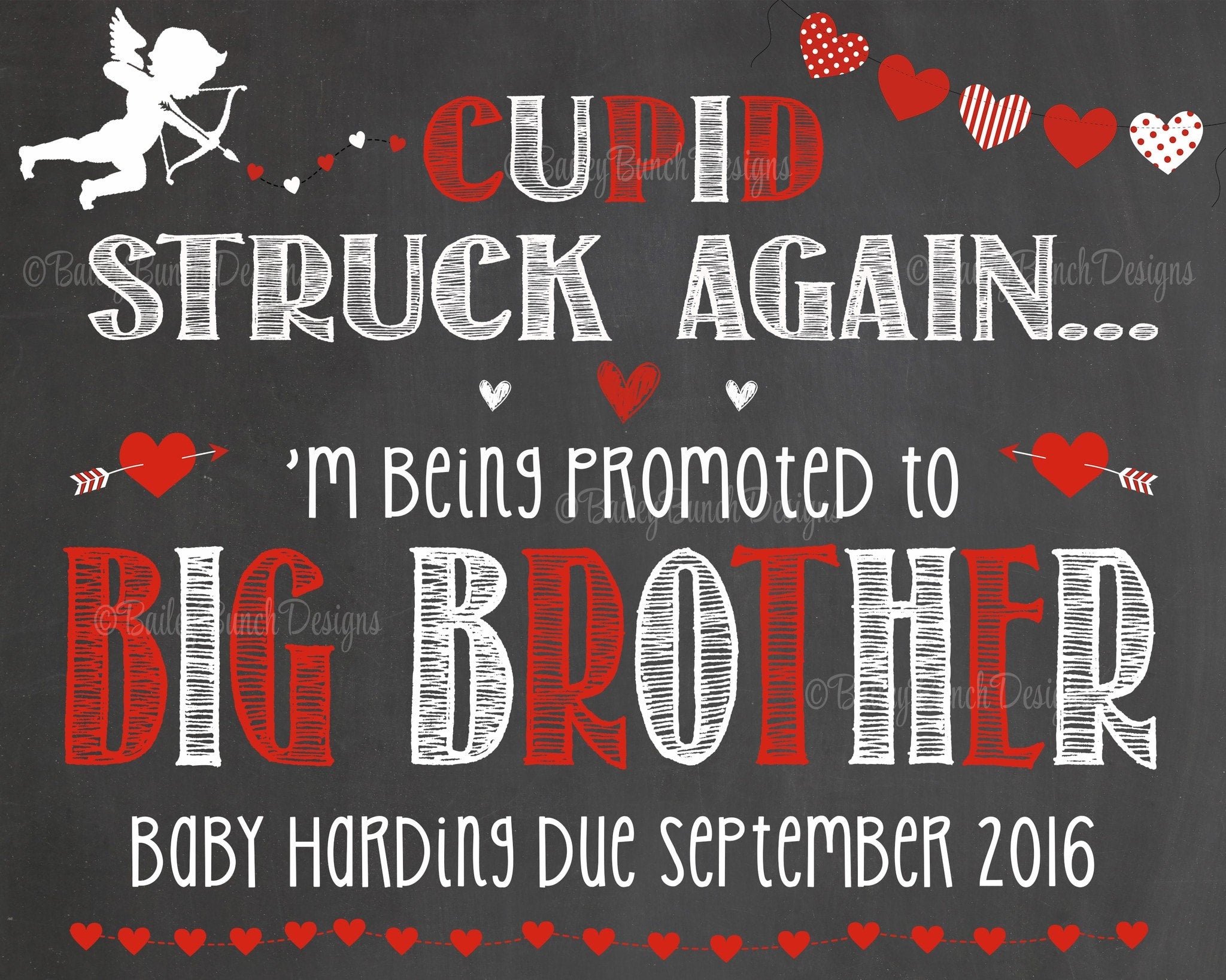 Pregnancy Reveal Announcement Big Sister Big Brother, Chalkboard Sign, Valentine Pregnancy VDAYCUPID0520