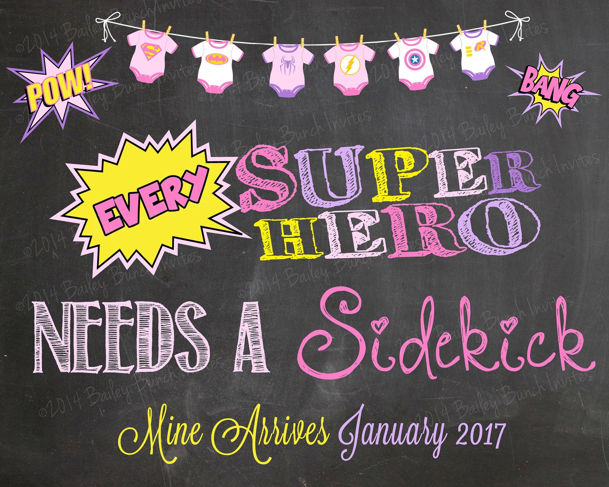 Every Superhero needs a Sidekick Pregnancy Reveal Chalkboard, Announcement, Super Hero - HERO0520