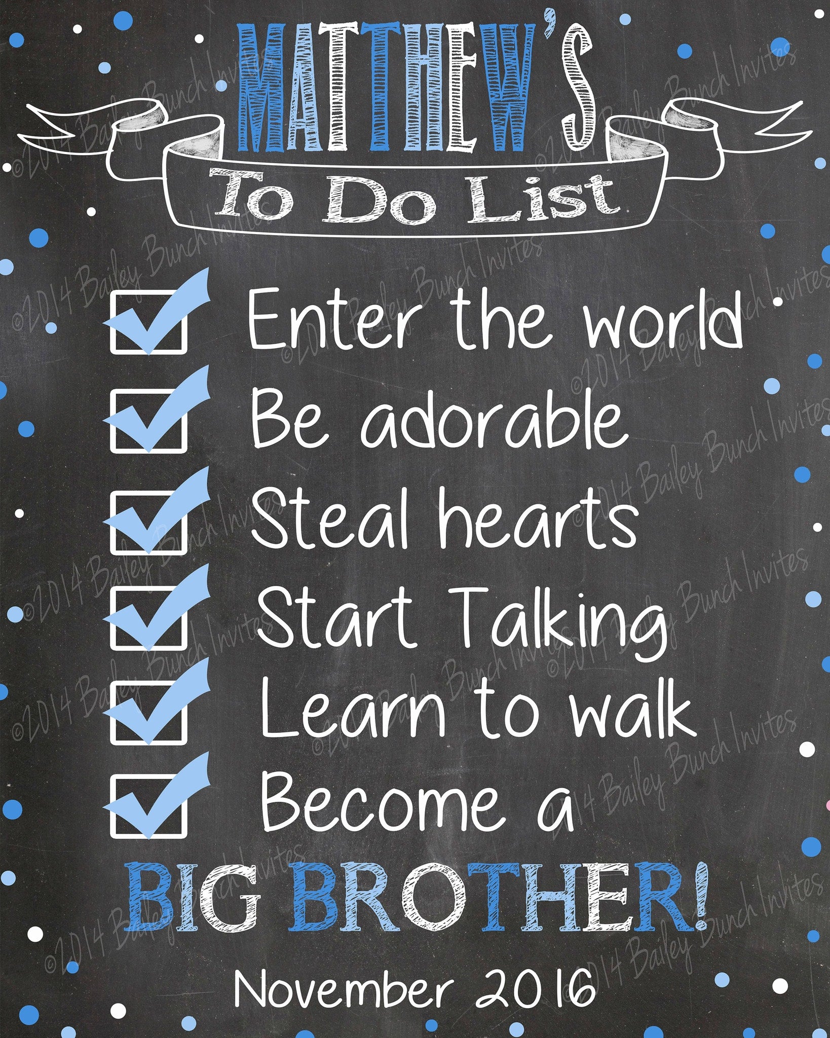 Pregnancy Reveal Announcement Chalkboard Sign, Big Sister, Big Brother to do list TODOLIST0520