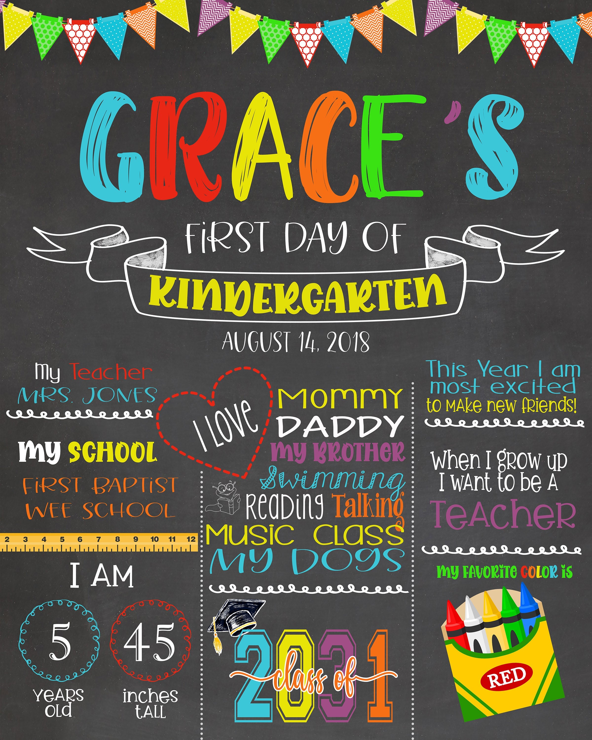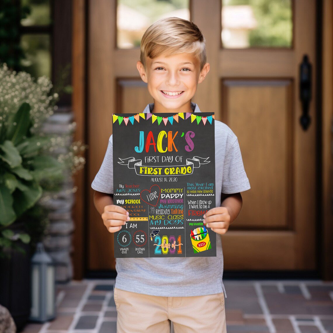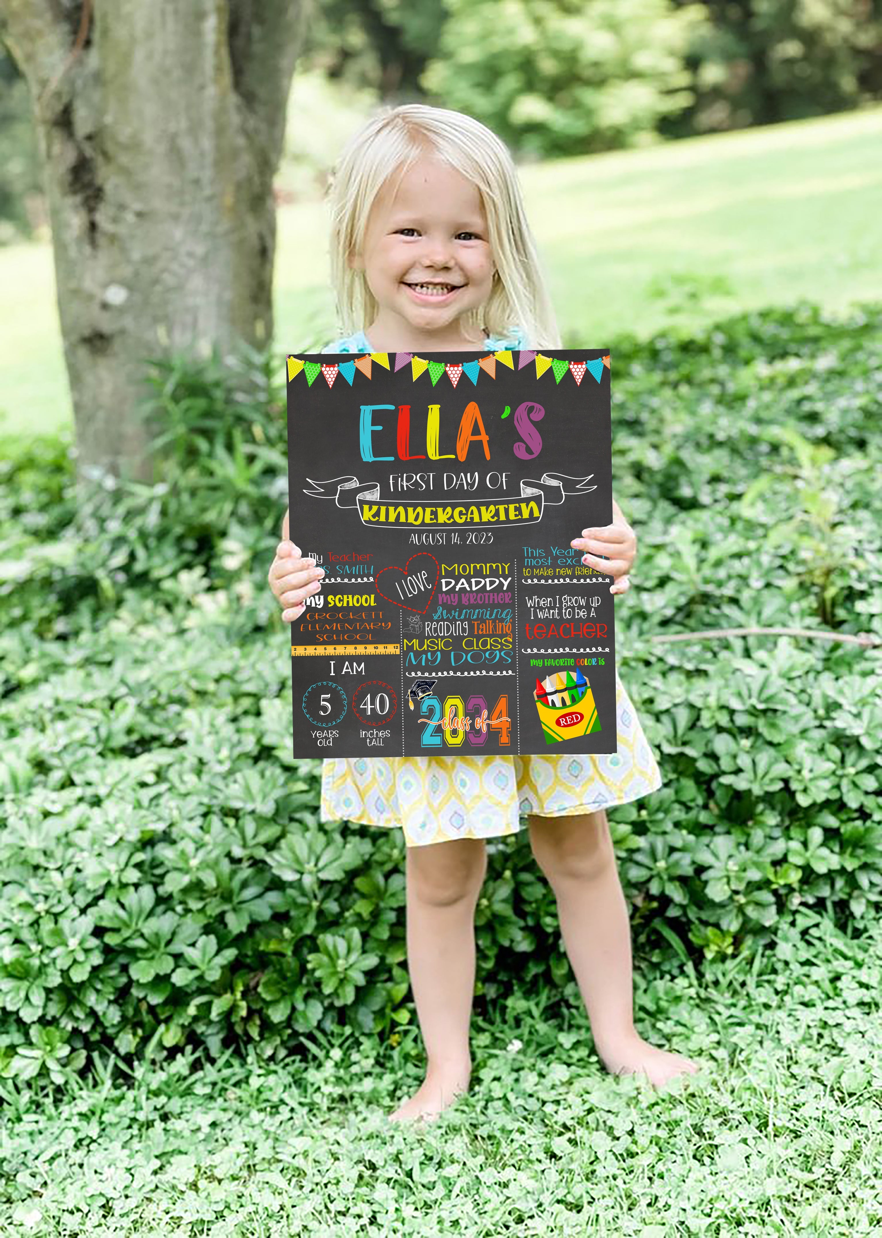 A cute sign to help celebrate your child's first day of school! (any grade) Just in time for the new school year! Start a tradition and take a photo of your child on his/her first day of school every year. Excellent for those precious keepsakes as well