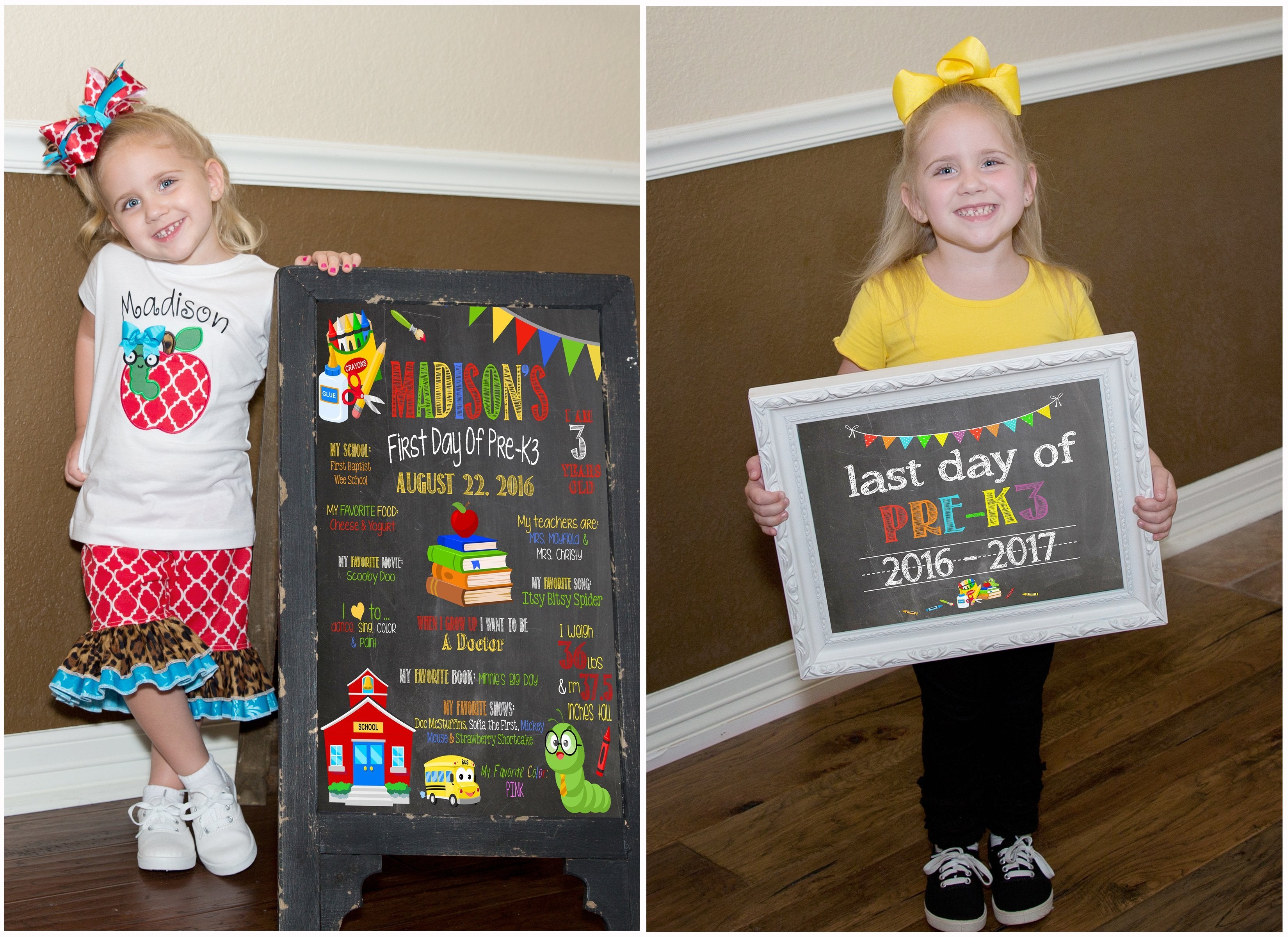 A cute sign to help celebrate your child's first and or Last day of school! (any grade) Just in time for the new school year! Start a tradition and take a photo of your child on his/her first day of school every year. Excellent for those precious keepsakes as well