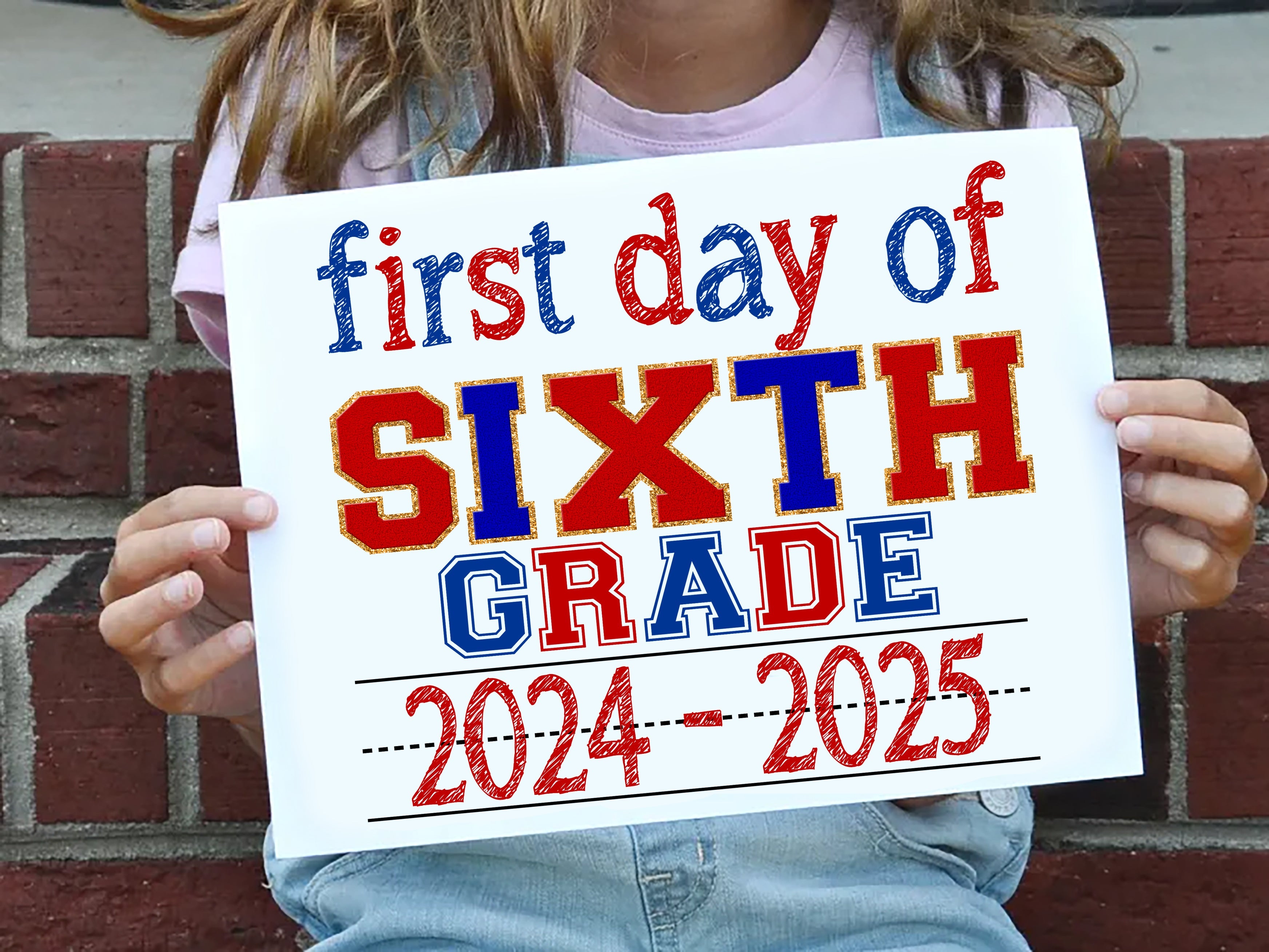Custom Listing - 6th & 7th Grade First Day of School Sign - SCHOOL0520REDBLUE