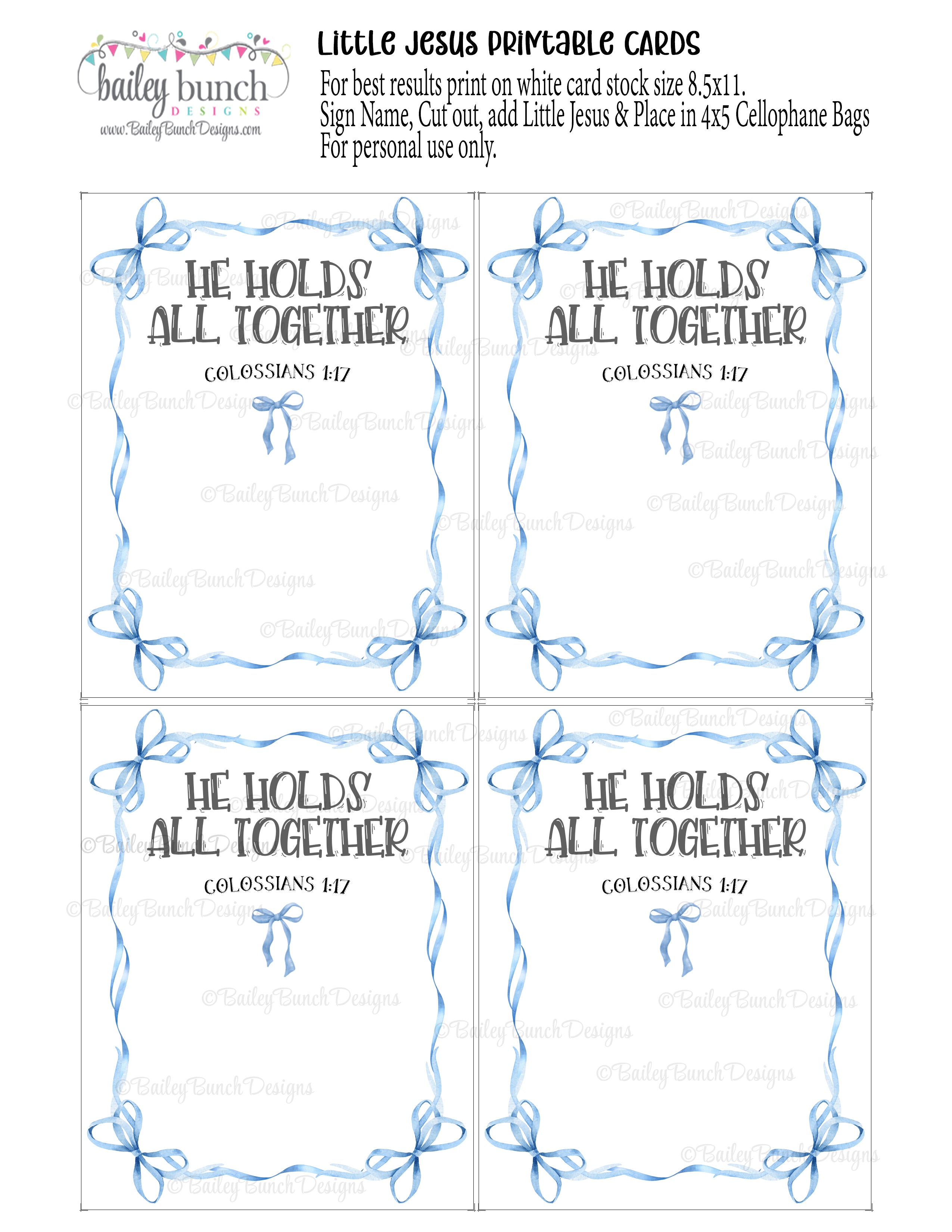 Little Jesus Bow Scripture Cards Printable Instant Download IDBOWBJESUSB052013