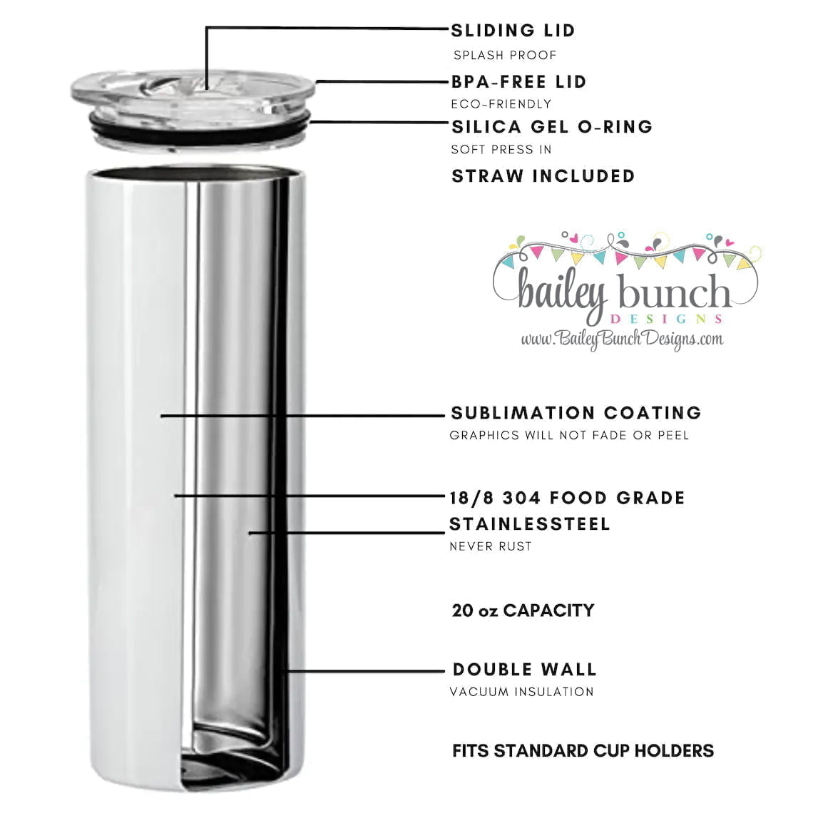 * Includes a BPA free sliding lid and a plastic reusable straw & care instructions