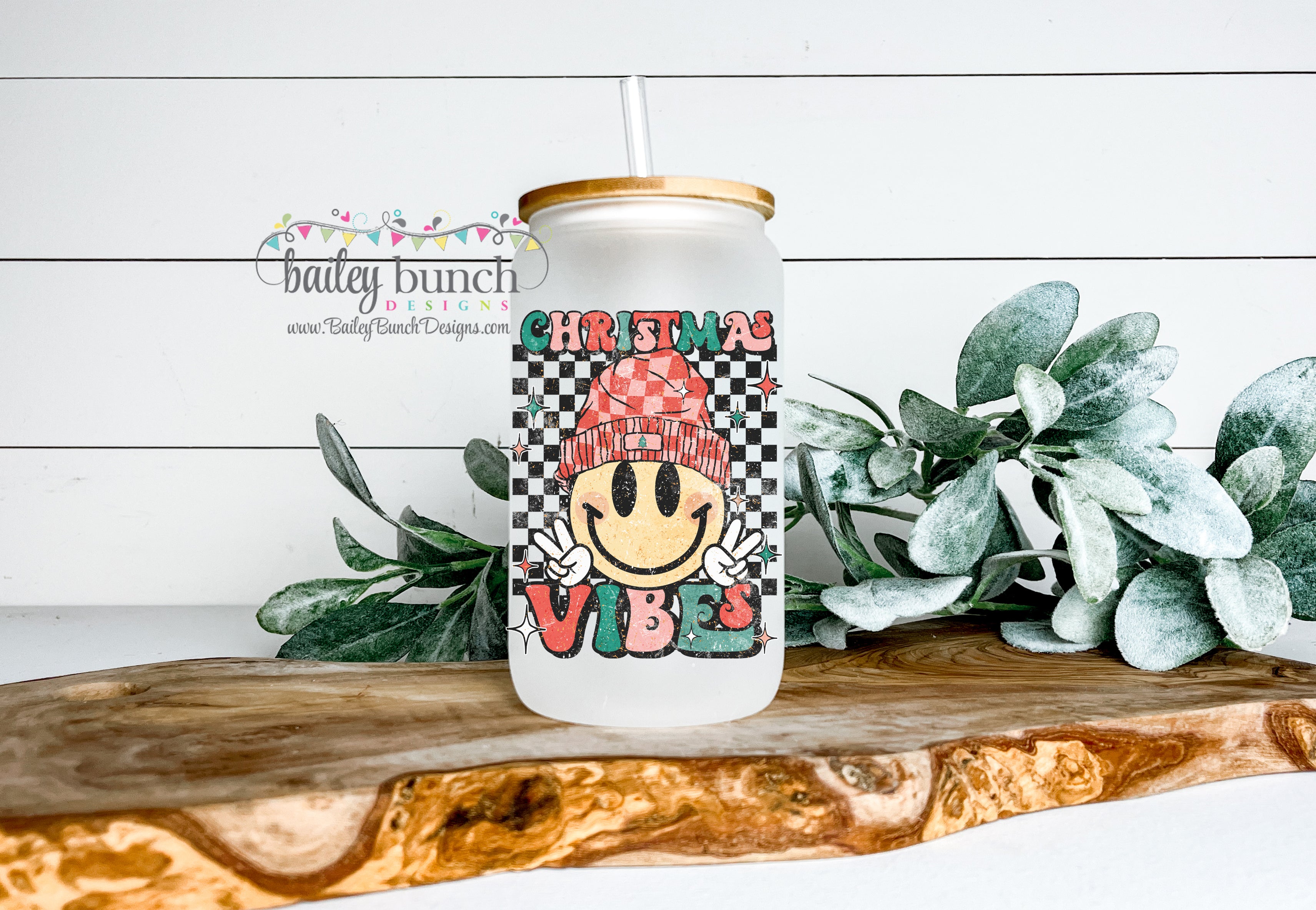 Christmas Vibes Smiley Face Frosted Glass Cup Libbey Can Tumbler LIBBEYCHRISTMASVIBES0520