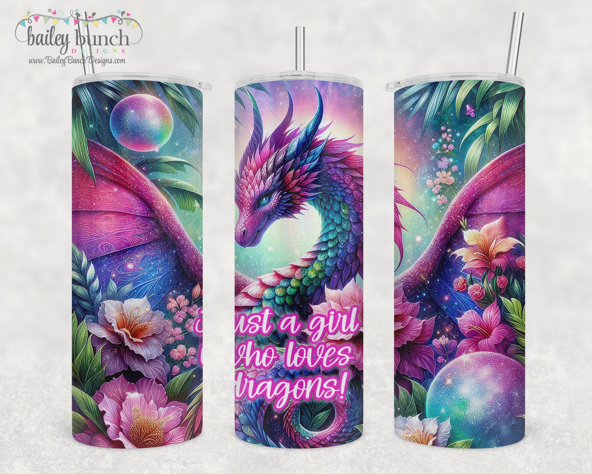 JUST A GIRL WHO LOVES DRAGONS GLITTER TUMBLER!