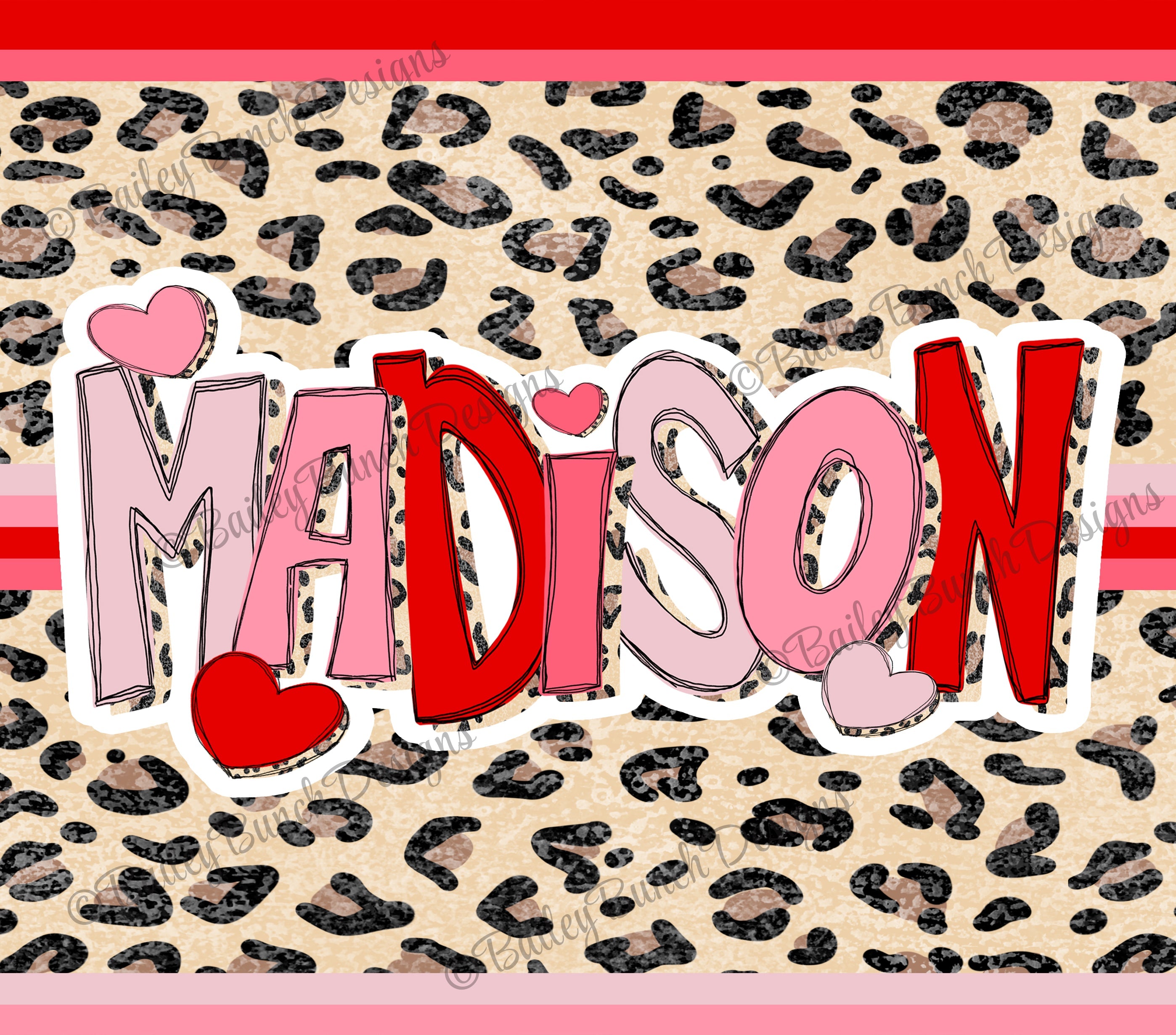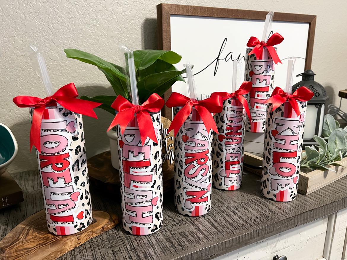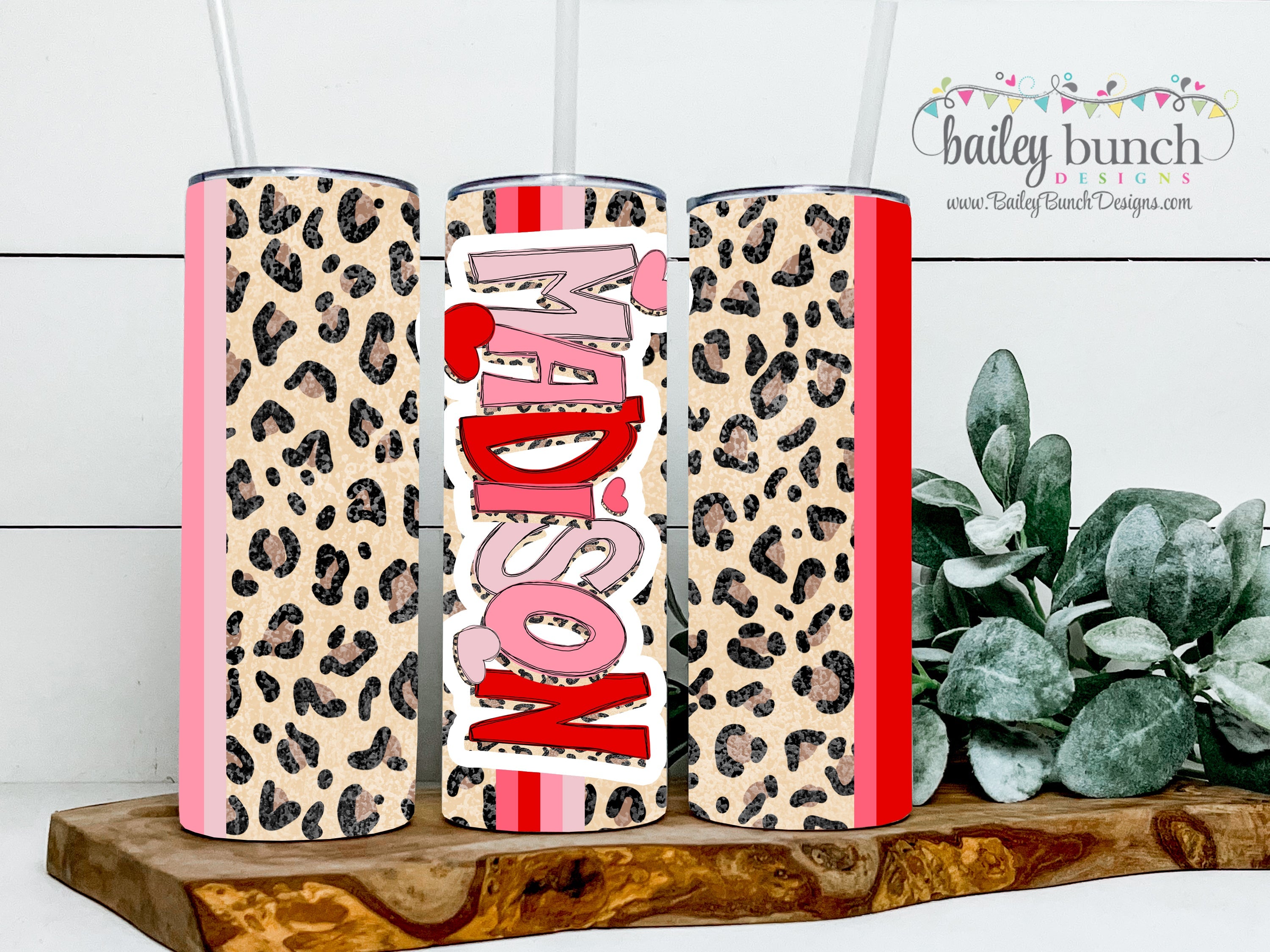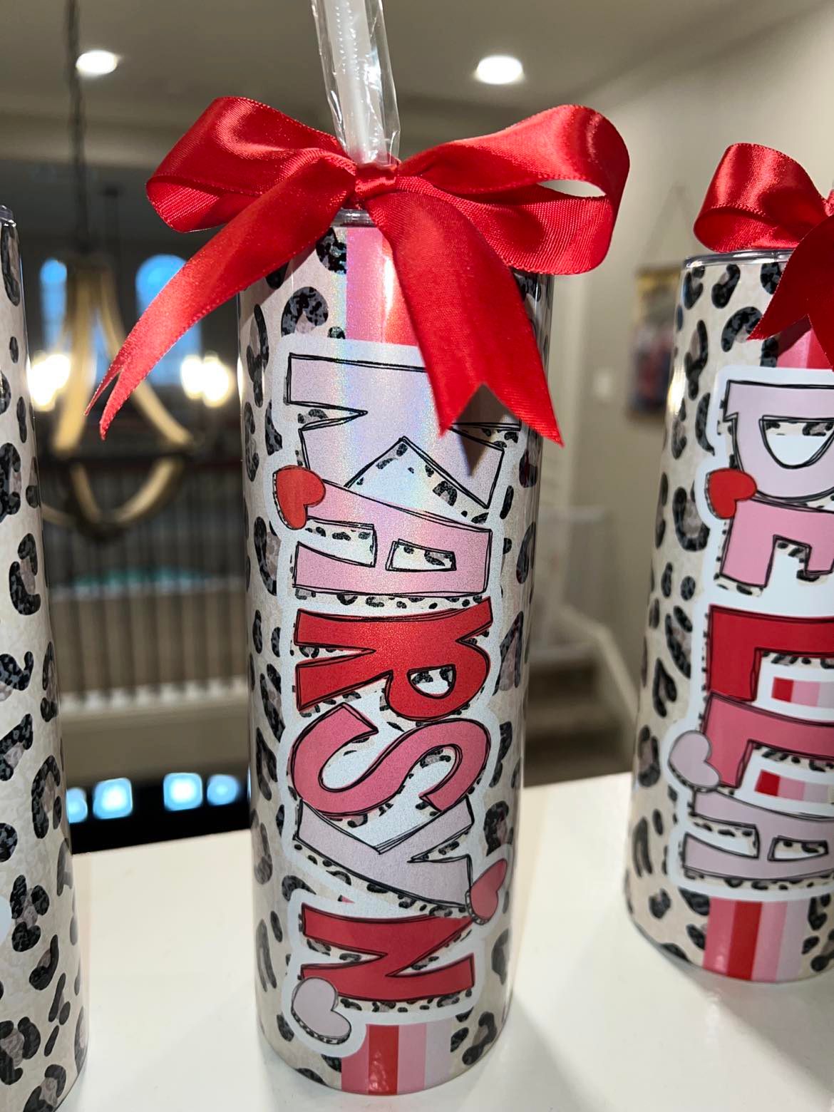 VALENTINE LEOPARD NAME GLITTER TUMBLER!