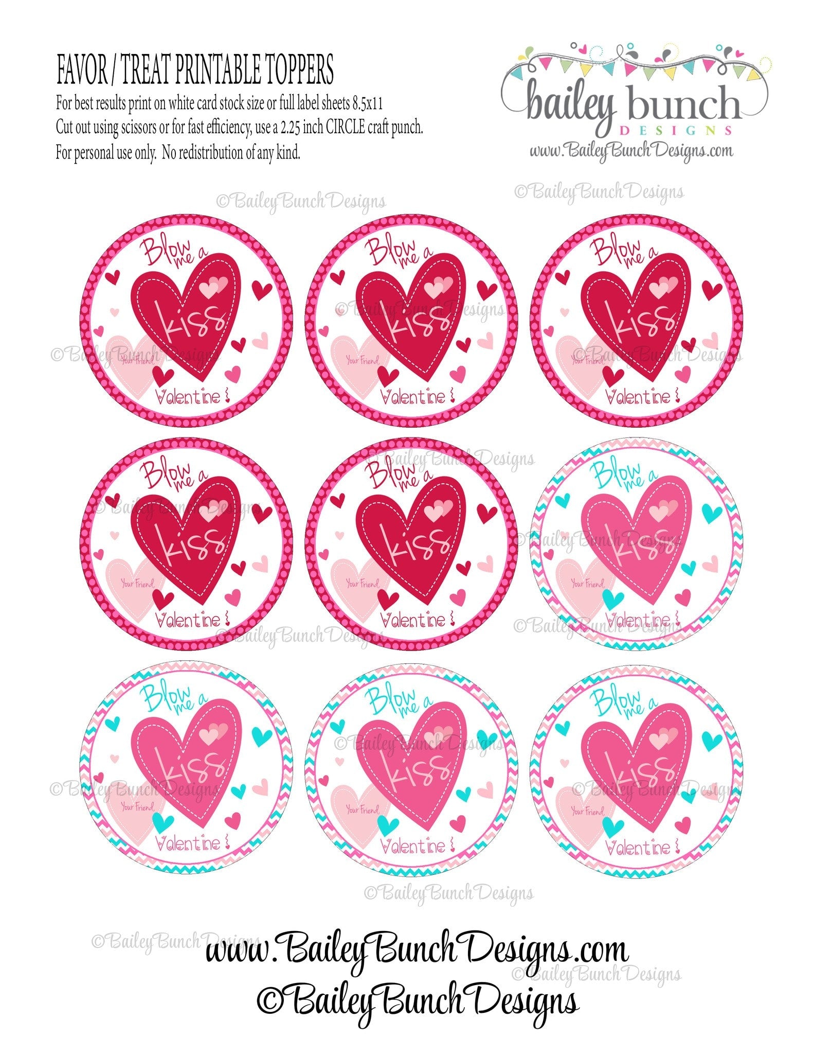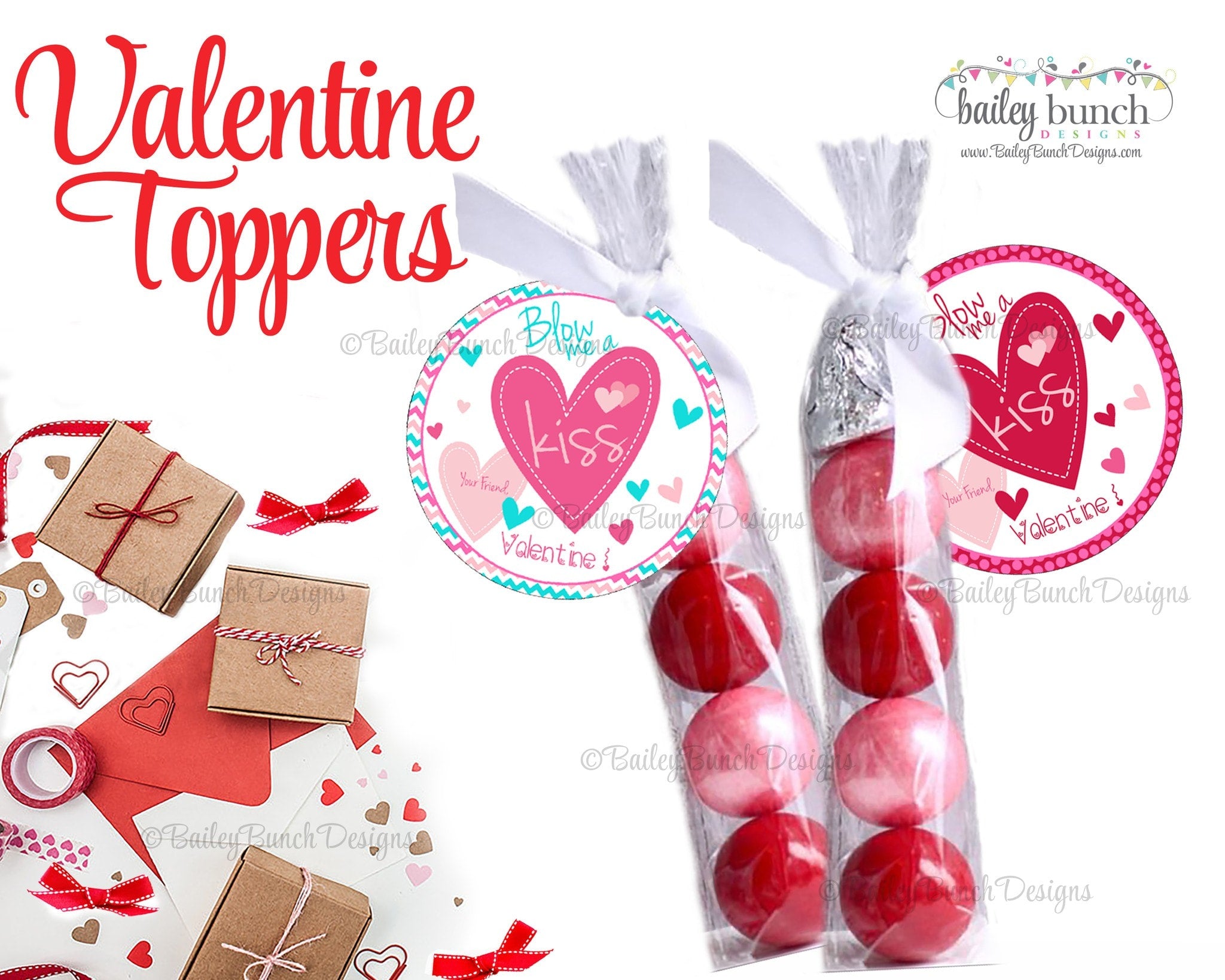 Blow Me A Kiss Valentine Treat Tags, Valentines - 2 DESIGNS!!  INSTANT DOWNLOAD