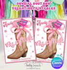 Celebrate Valentine’s Day with this adorable Cowgirl Boots Howdy canva template Valentine's Day Cards! This Howdy Valentine's Day Card Printable is the perfect addition to your little one's classroom exchange, party favors, or special treats. Featuring a cowgirl boot with pink bow, and a cheerful "Howdy Valentine!" message, this card is sure to make any kid smile! Pair this printable with a candy or treat for a fun classroom-approved gift!