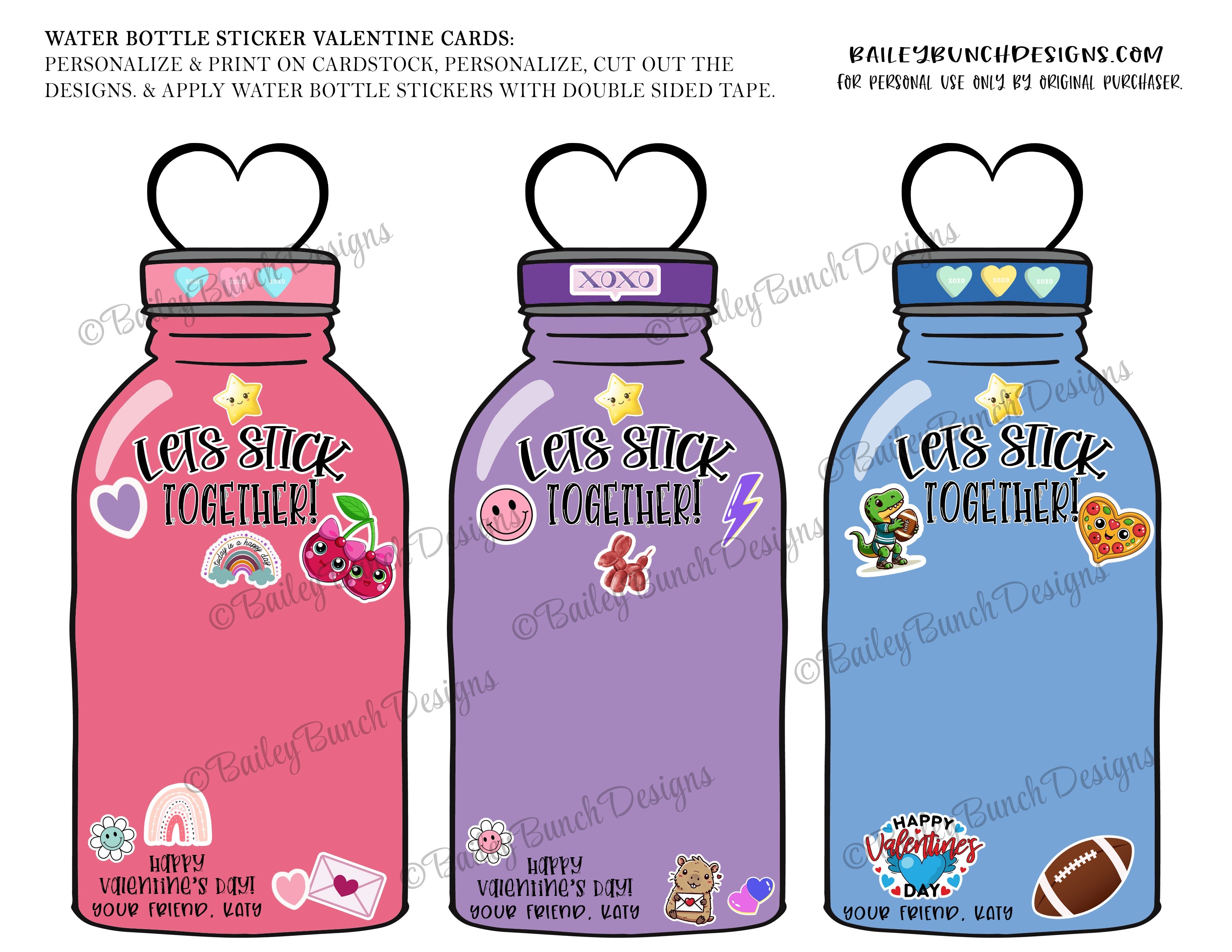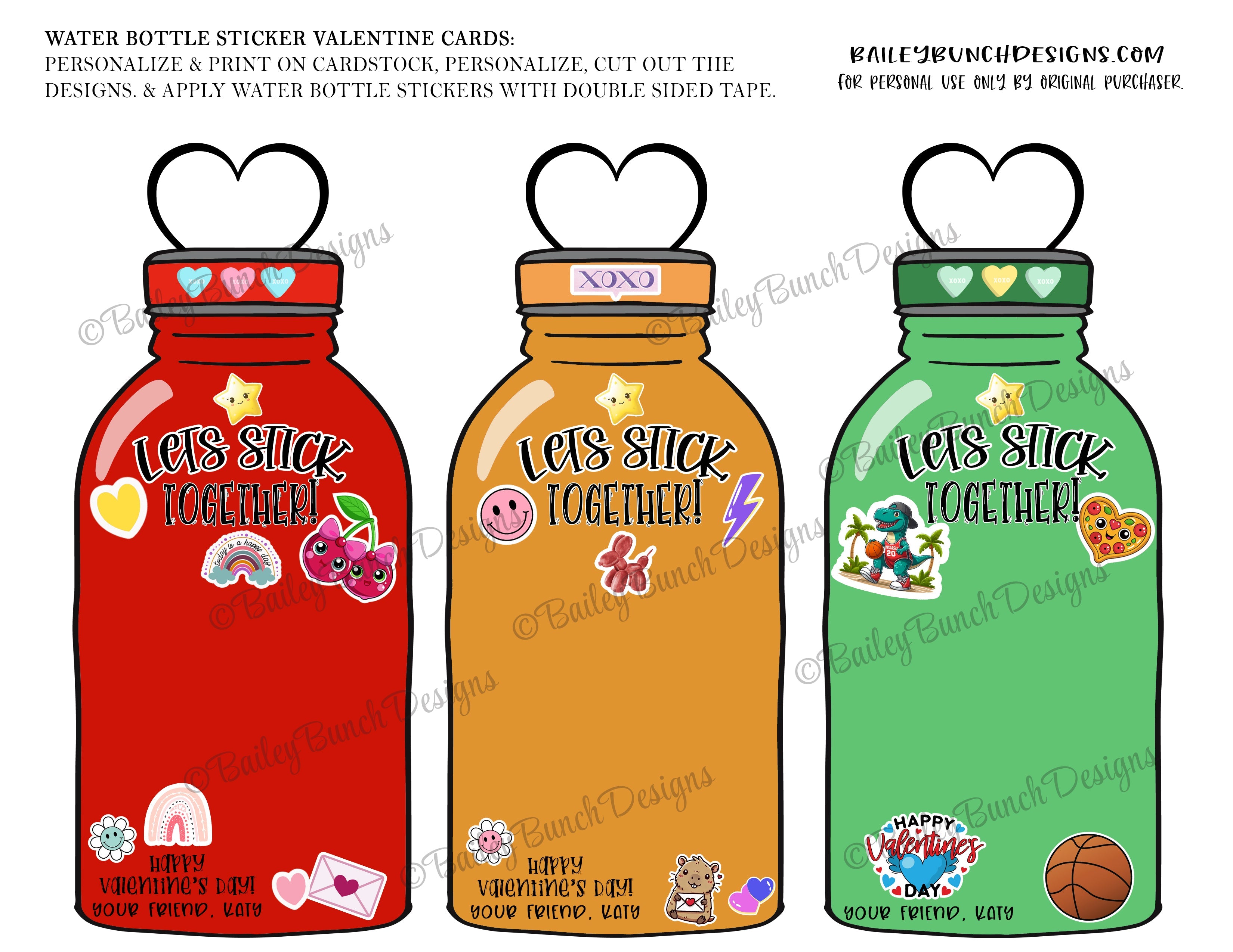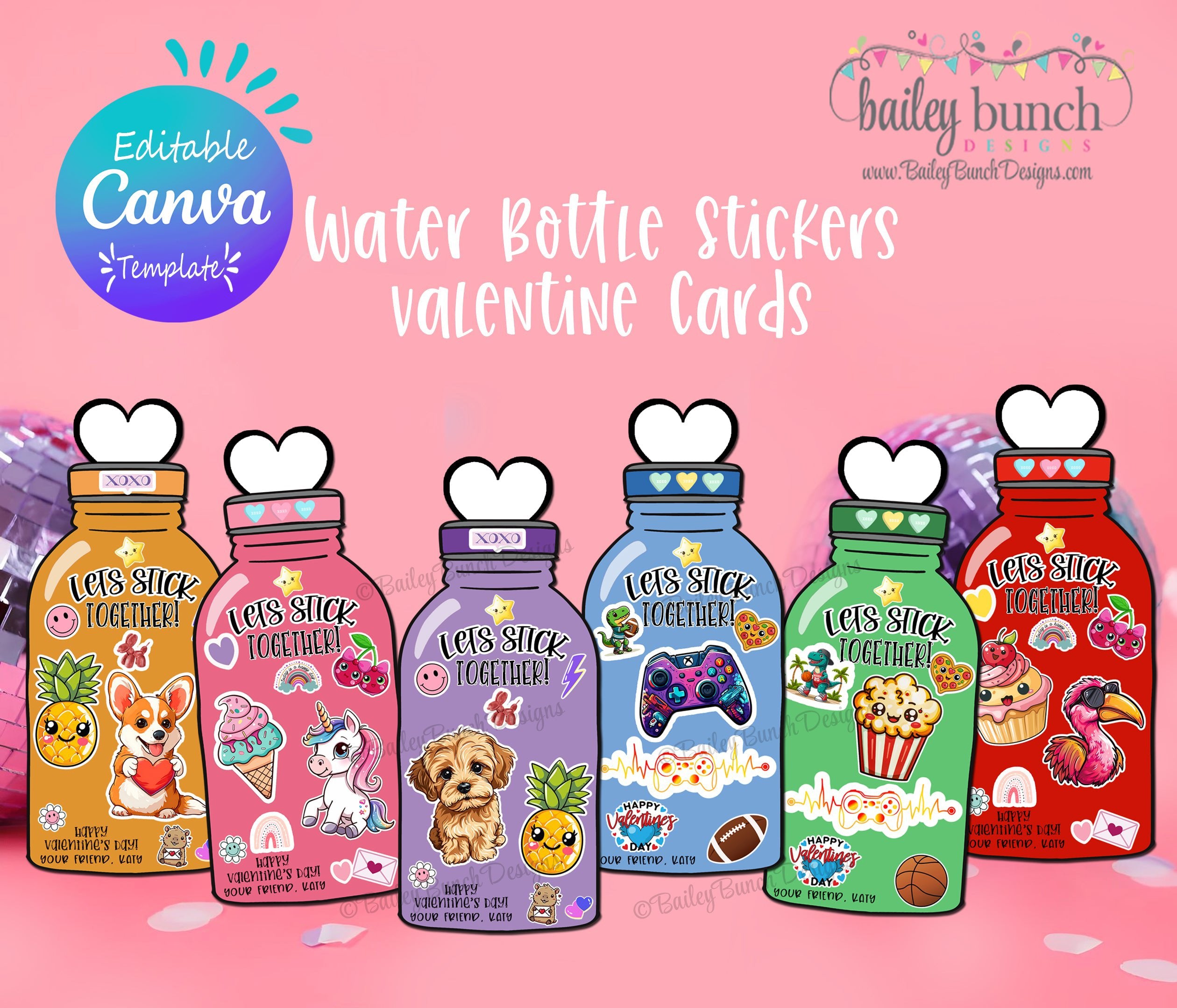 Celebrate Valentine’s Day with this adorable Water Bottle Sticker canva template Valentine's Day Cards! This kids valentine printable comes in 6 different color and design options. Cards print 3 per standard sheet. Print them all or choose your favorite! Print as many as you need. Nothing physical will be shipped.