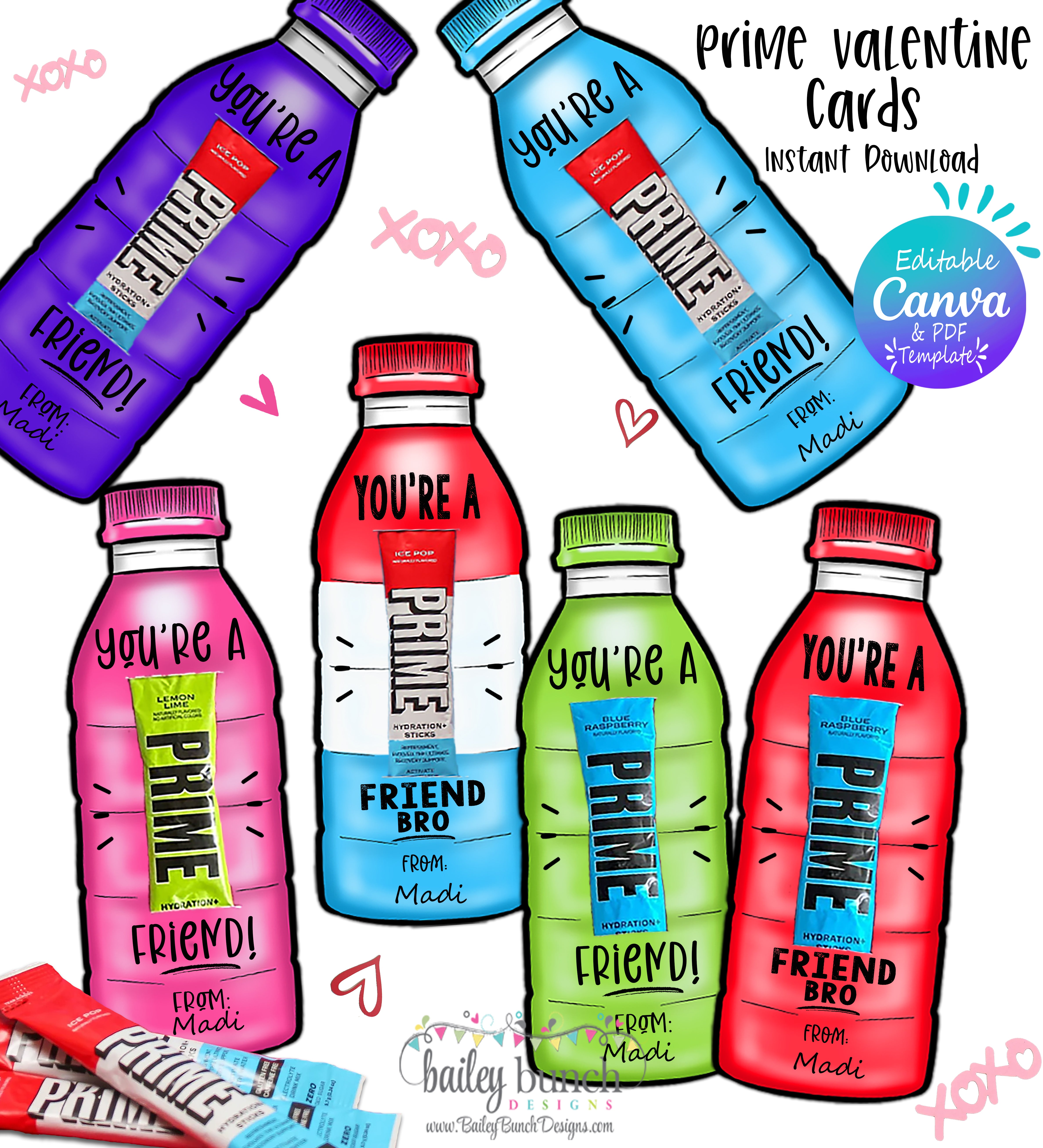 "You're a PRIME Friend!" & "You're a PRIME Friend Bro!" PRINTABLE VALENTINE'S DAY DRINK CARDS