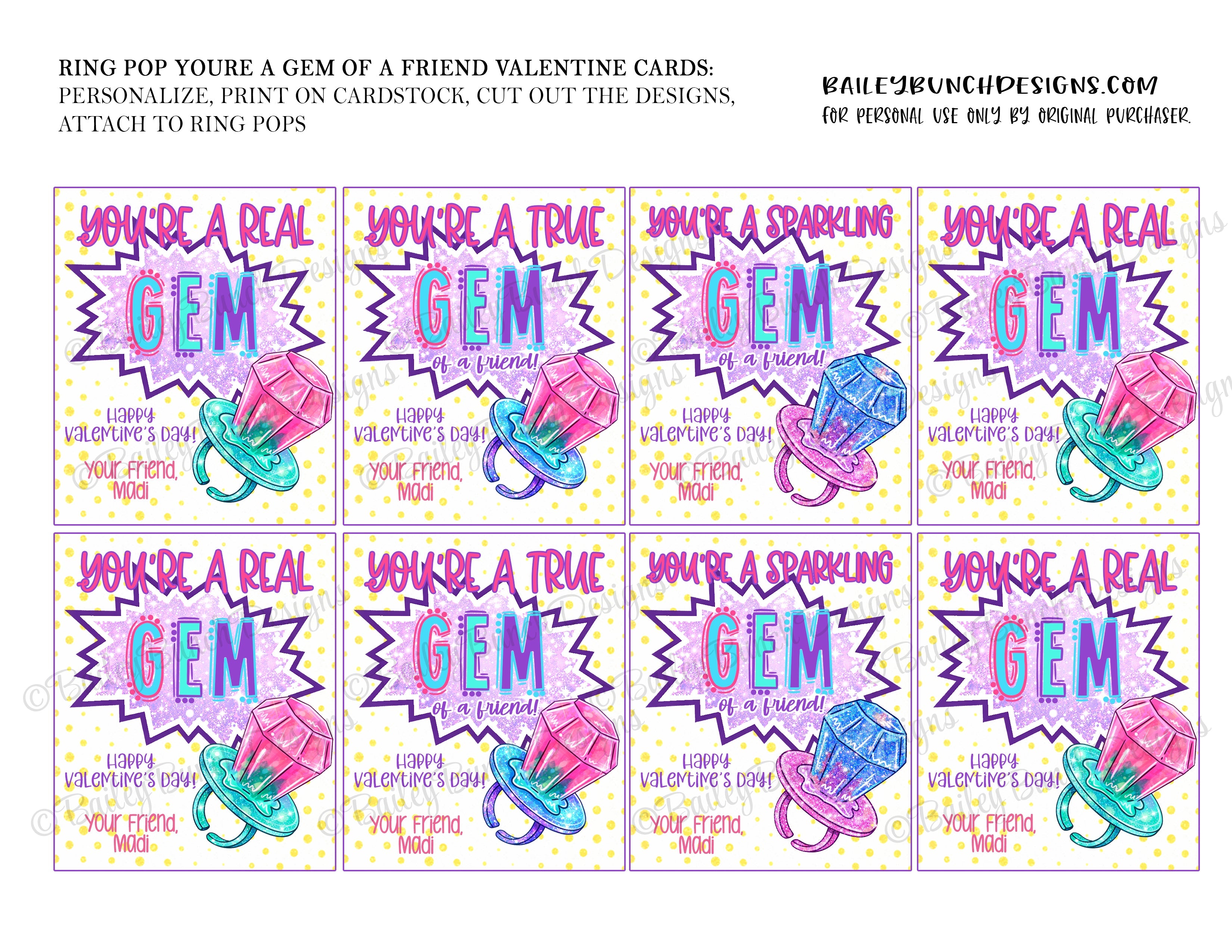 Ring Pop Valentine  Printable Valentine Card Kids Valentine Ring Pop Valentine Card Valentine’s Day Card Instant Download Digital Download Classroom Valentine School Valentines Treat Tag Gem Ring Pop Treat Tag Valentine Printable DIY Valentine You're a real GEM of a friend Printable Classroom Valentine Kid Valentine Cards School Valentines Favor Tag Gem Candy Tag Valentine Gift Label  You’re a Gem  Friendship Valentine Classroom Exchange Card Printable PDF Party Favor Tag Ring Pop Treat Digital PDF Download  Holiday Printables