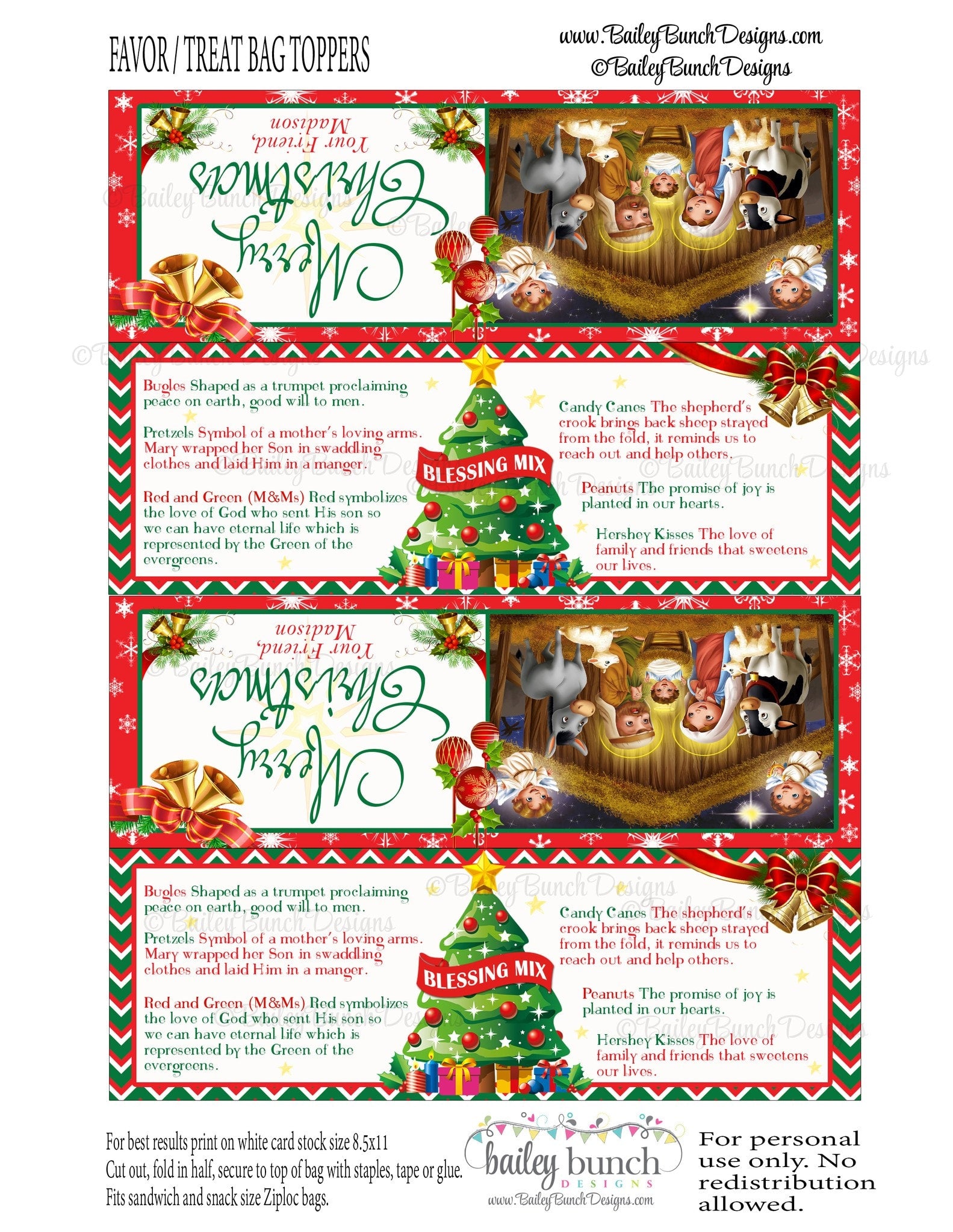 Christmas Blessing Mix Treat Bags - PERSONALIZED - 2 DESIGNS!!