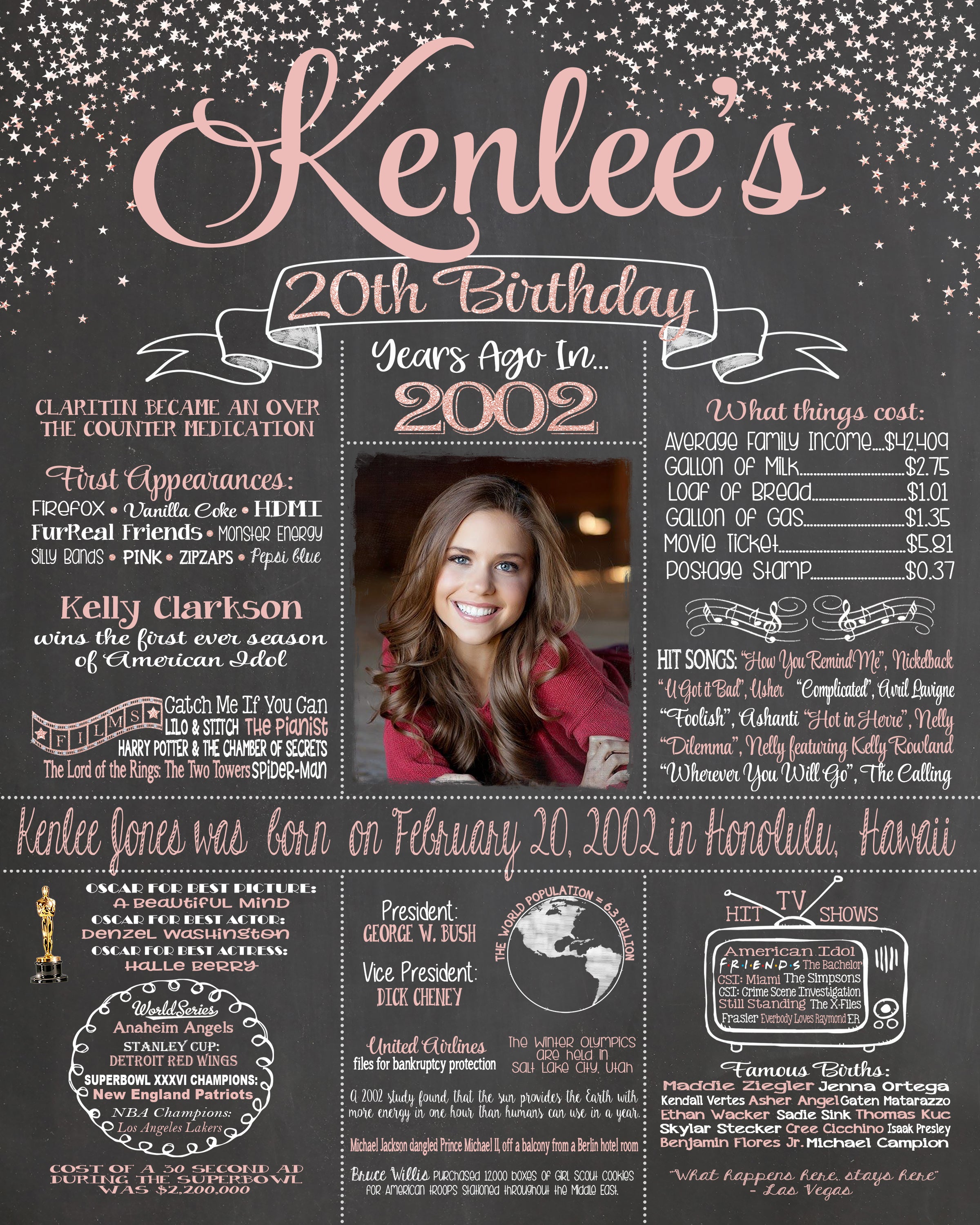 2022 Design - Birthday Sign, 20th Birthday Chalkboard, Back in 2002 Board 20YR20010520