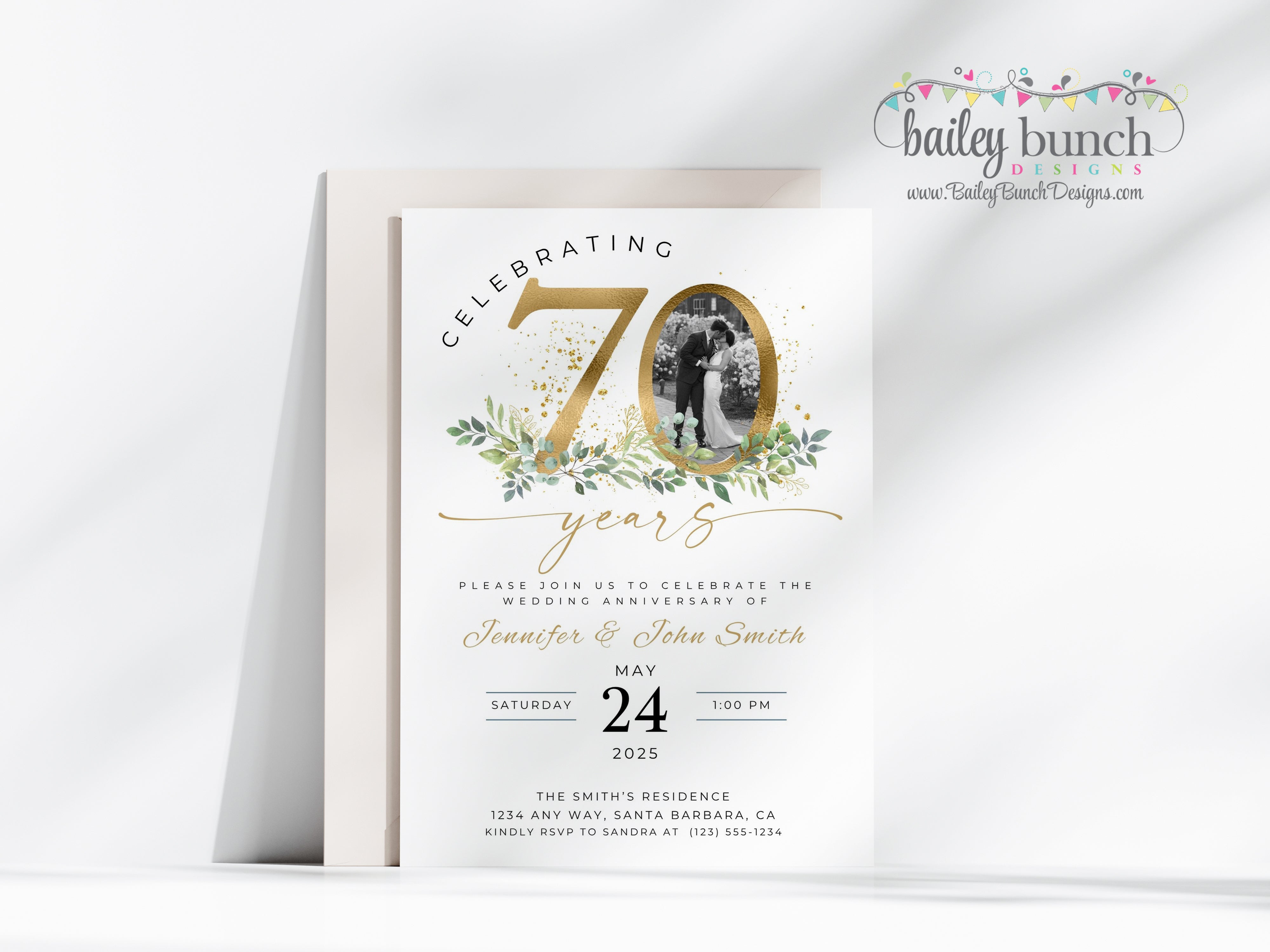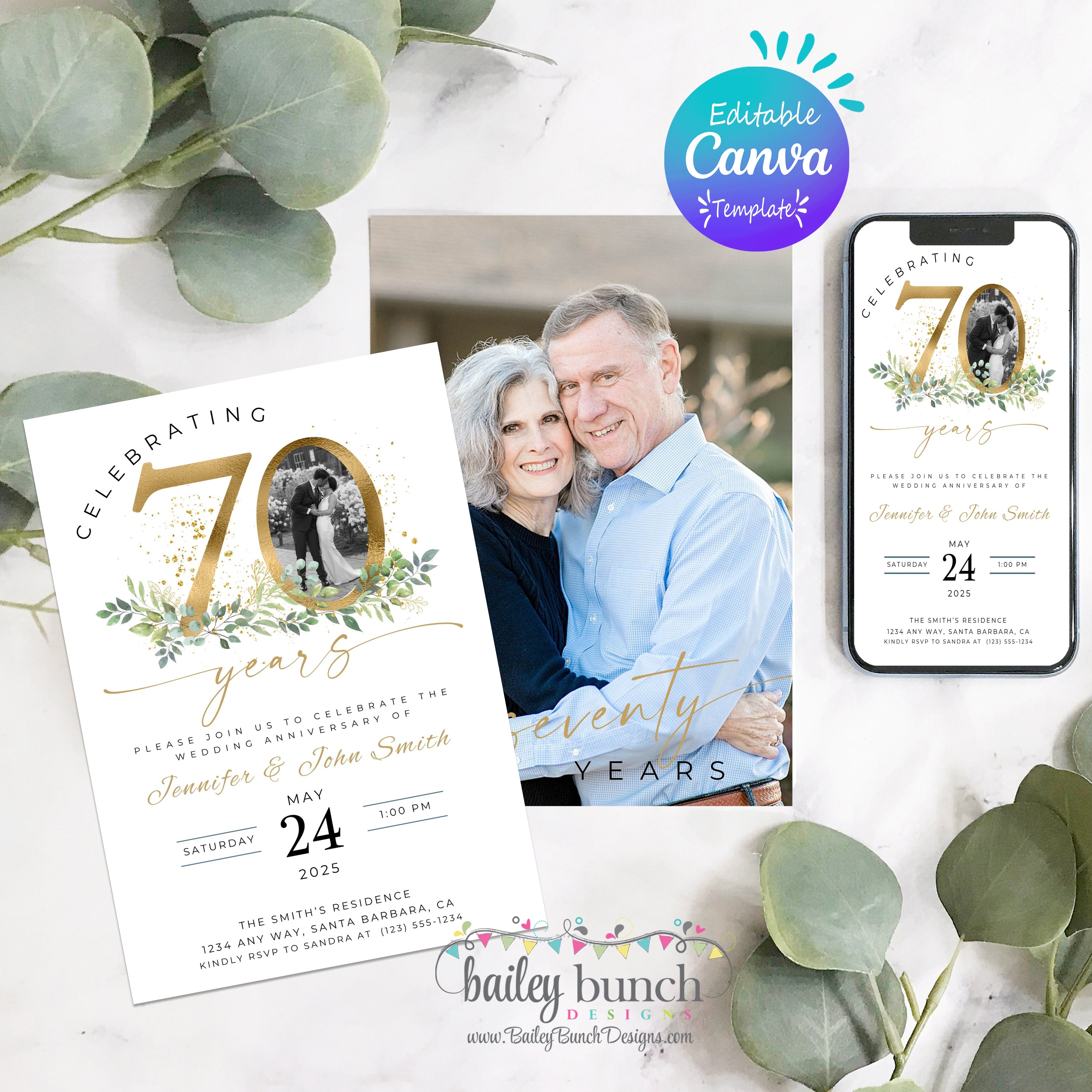70th Wedding Anniversary Photo Invite Template ANNTEMP7005