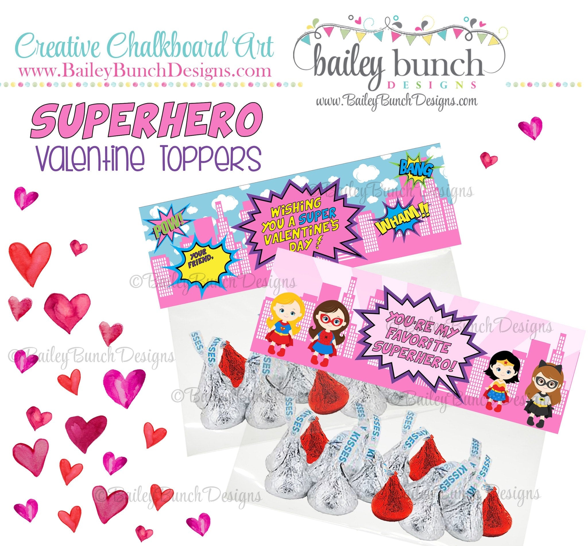 Superheros Valentine Bag Toppers, Girl PINK Superhero Valentines IDVDAYHEROGIRLPINK0520