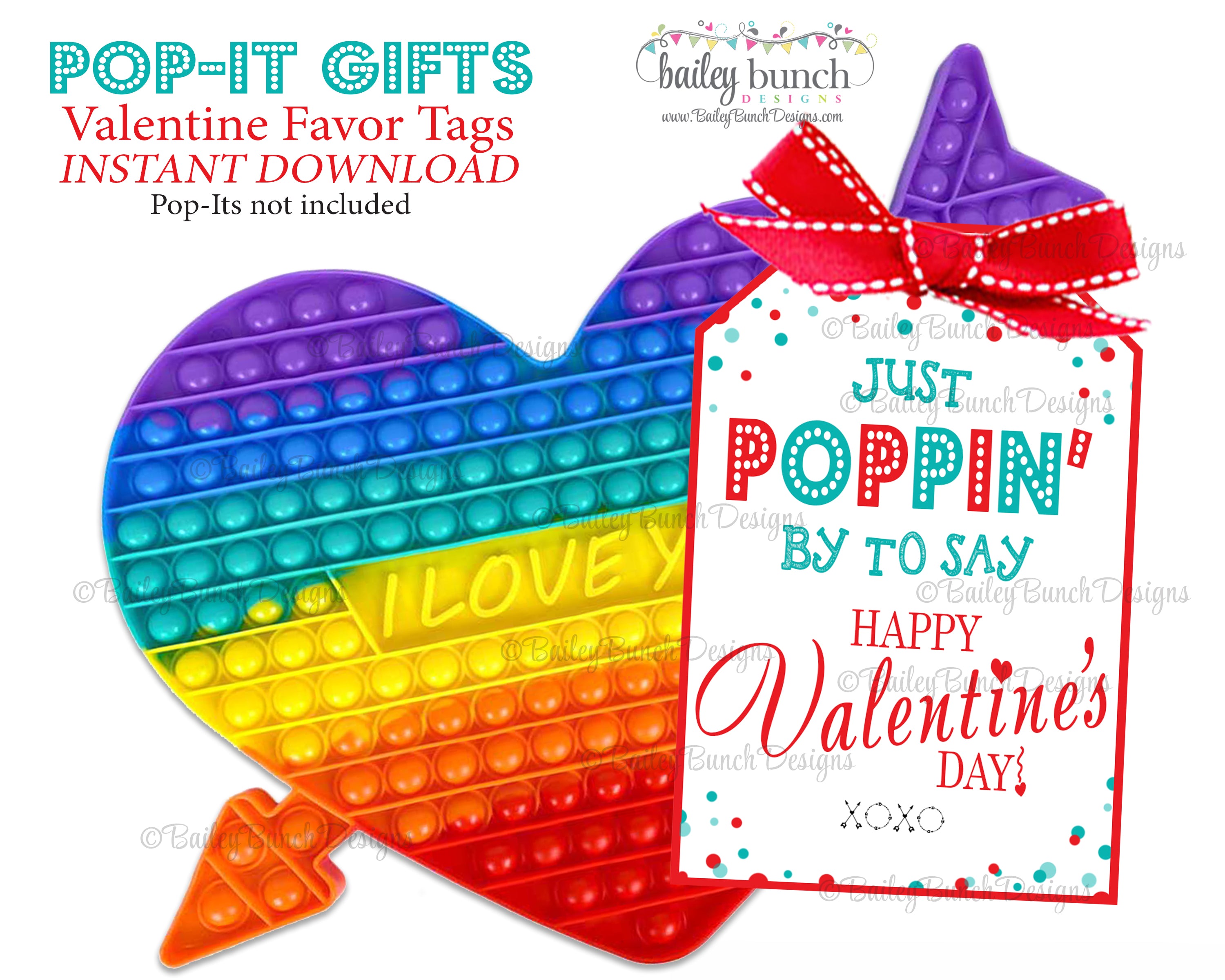 Valentine RED Pop It Fidget Gift Tags, Valentines Gifts, Red Valentine TAGS - Just poppin' by to say Happy Valentines Day - INSTANT DOWNLOAD