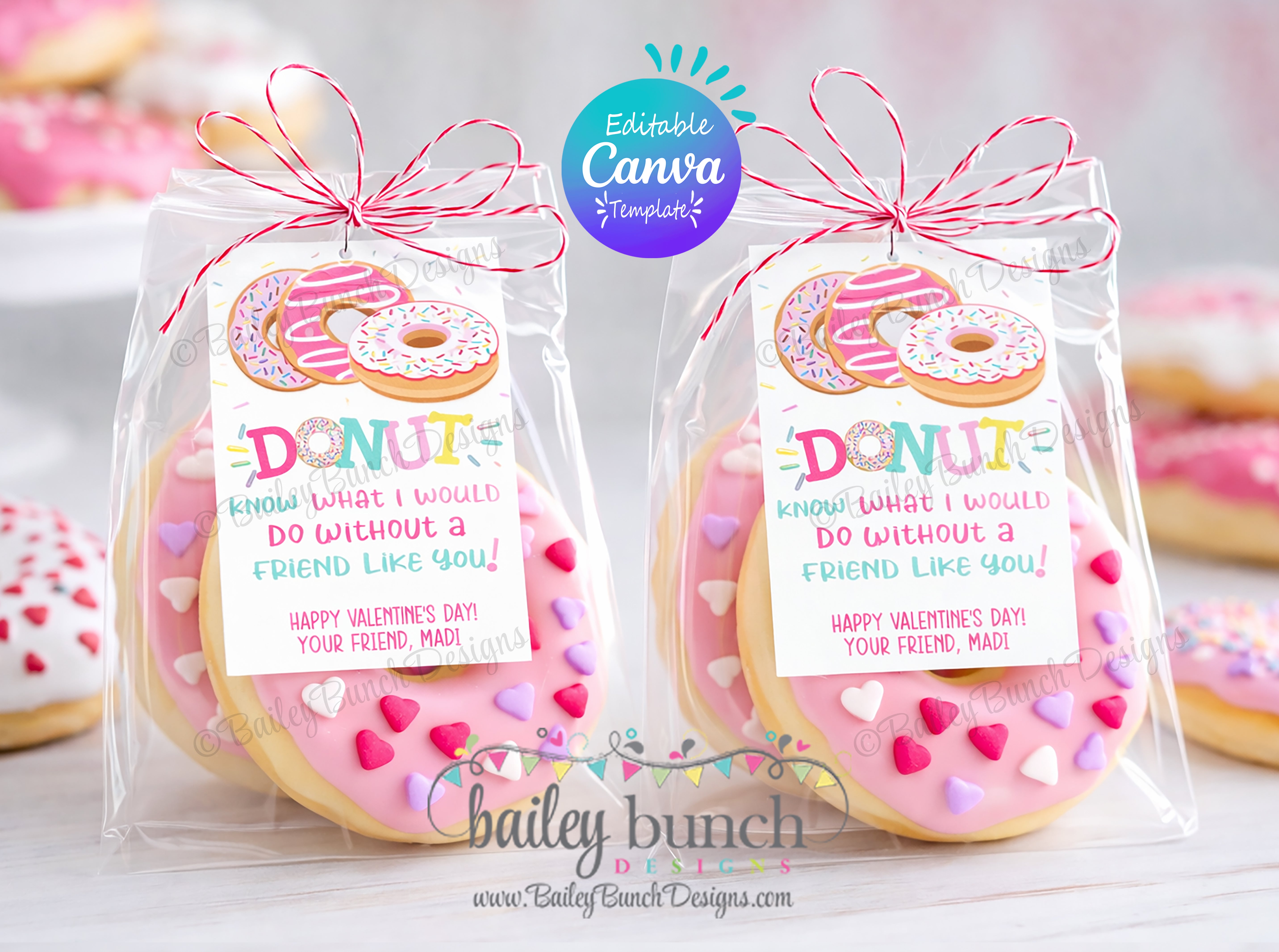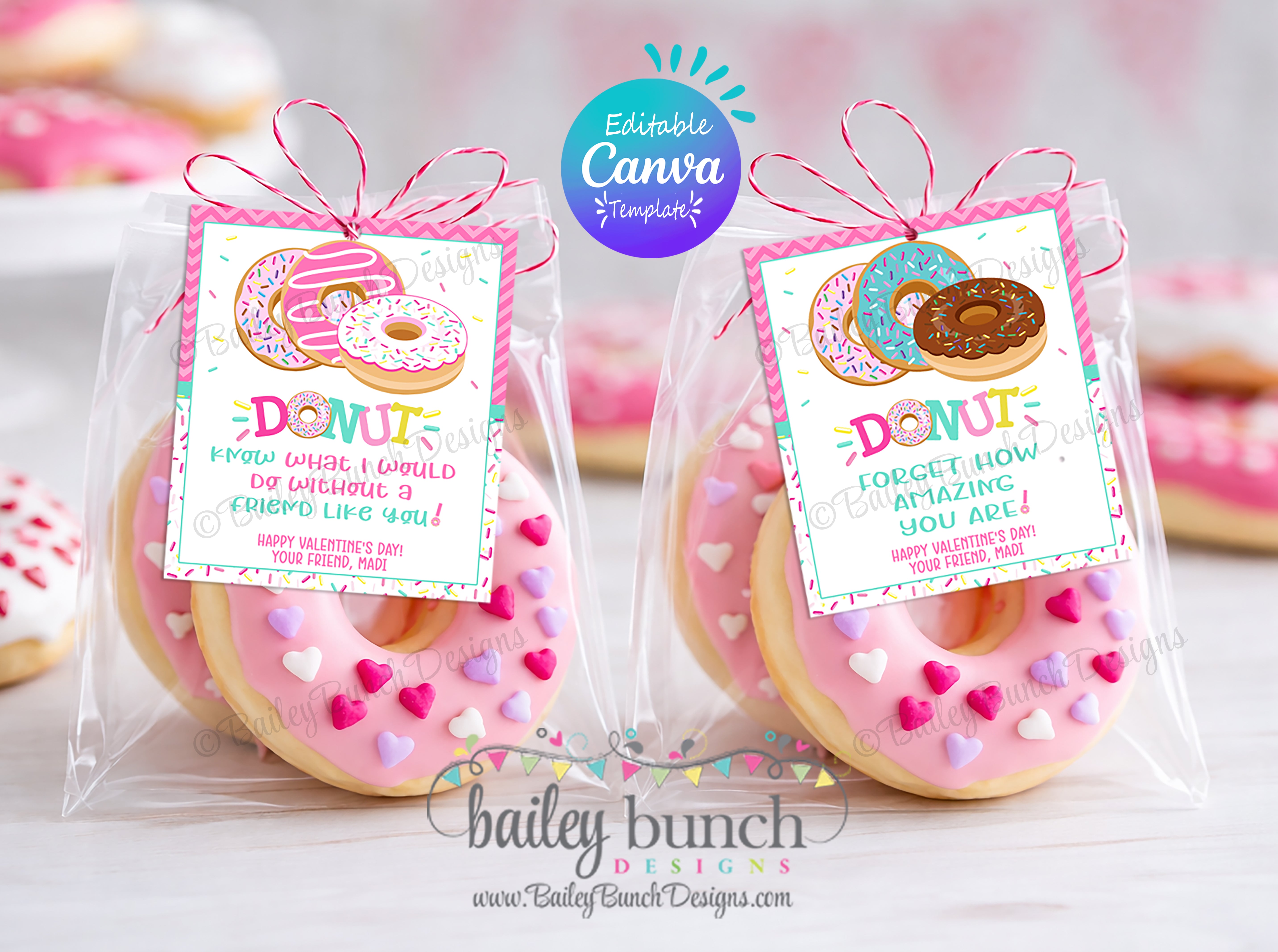Looking for a super cute and easy kid's valentine? Look no further! This EDITABLE CANVA TEMPLATE Printable adorable Donut Kids Valentine are too fun to pass up! This kids valentine printable comes in 2 different designs and 2 different wording options.