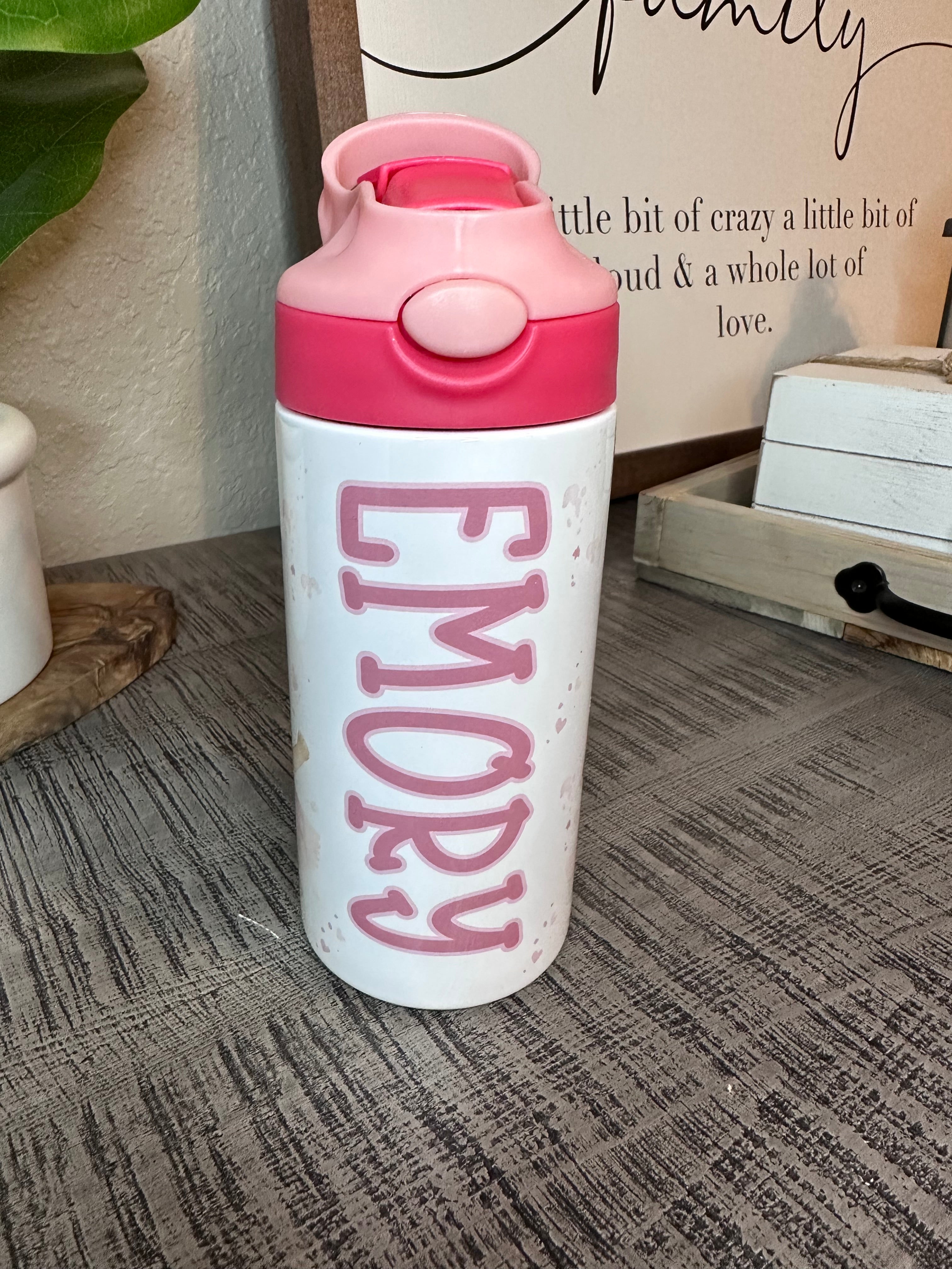 Our 12oz Kids Flip Top Tumbler, features stainless steel insulated tumbler with a double-wall vacuum insulation with a Leak-Proof flip-top lid and a Reusable Plastic Straw.