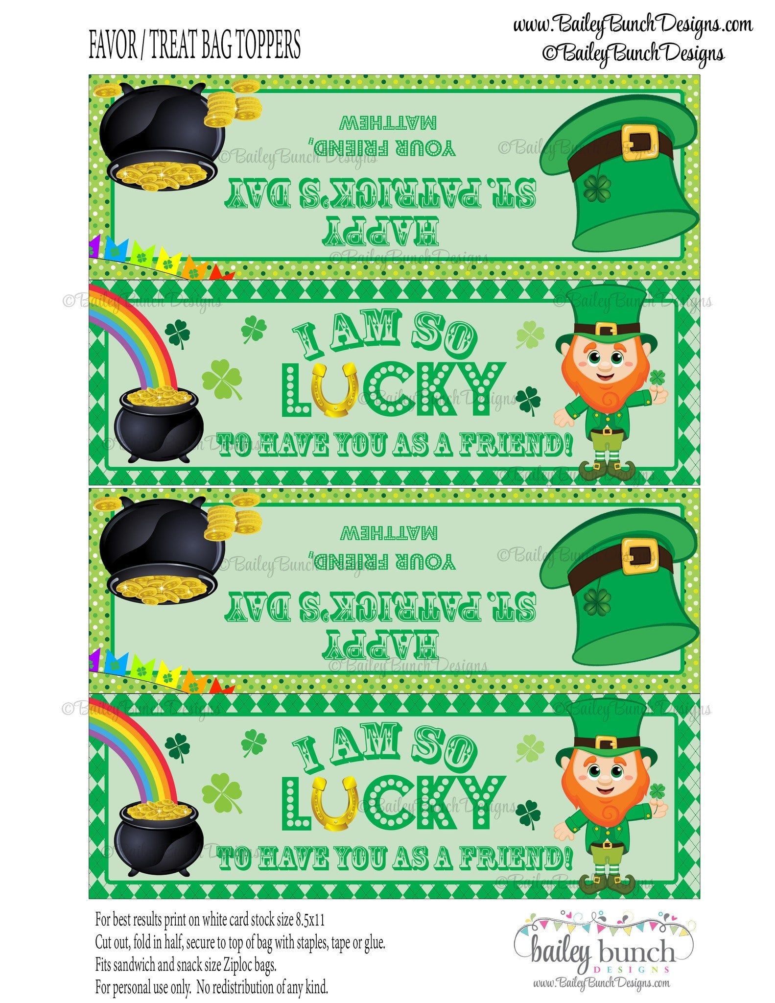 ★ Favor/Treat Bag Toppers measure 6.7 x 2.25" when folded and fits sandwich and snack size Ziploc bags - PERSONALIZED with one name
