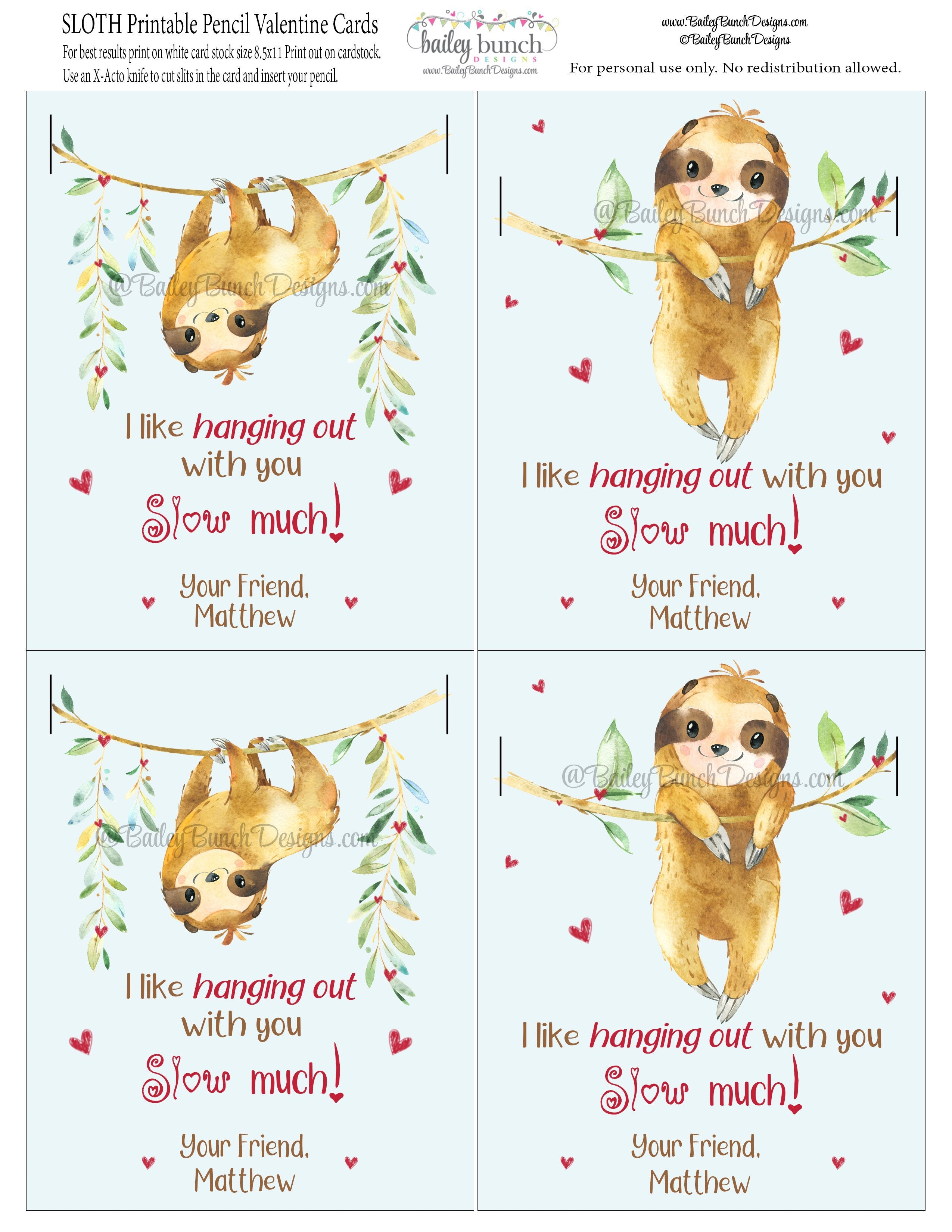 Sloth Pencil Valentines, I like hanging out with you SLOW much VDAYSLOTH0520