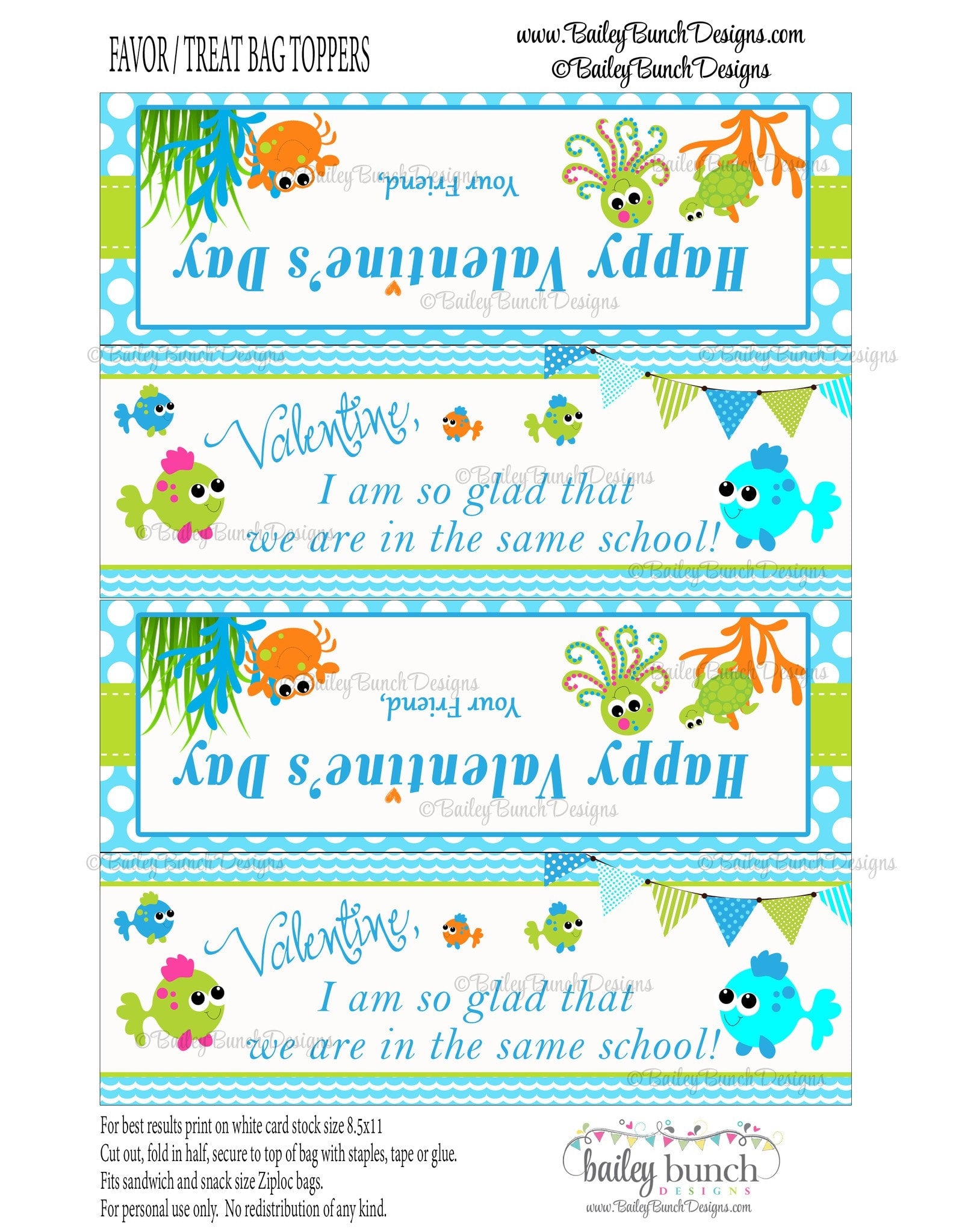 Under the Sea Treat Bag Toppers, Valentines - 2 DESIGNS!! INSTANT DOWNLOAD