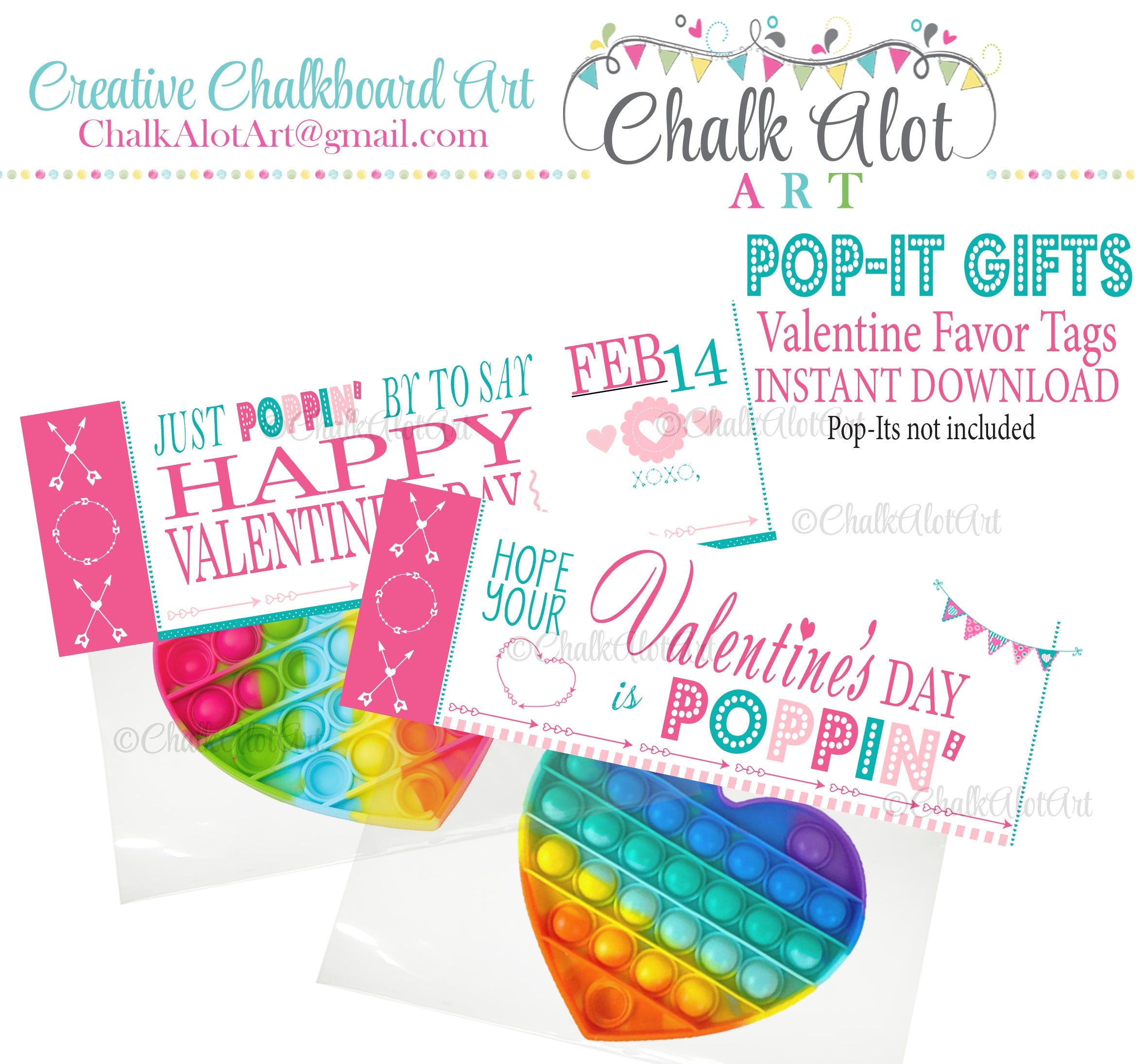 Valentine Pop It Fidget Gift Tags, Valentines Gifts, Pop Its Fidget Valentine Gifts- Just Poppin' By to Say Happy Valentine's Day - INSTANT DOWNLOAD