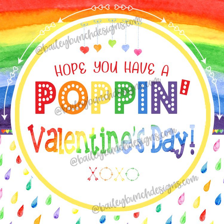 Valentine RAINBOW Pop It Fidget Gift Tags, Valentines Gifts, Rainbow Valentine SQUARE - Hope your valentines day is poppin' - INSTANT DOWNLOAD